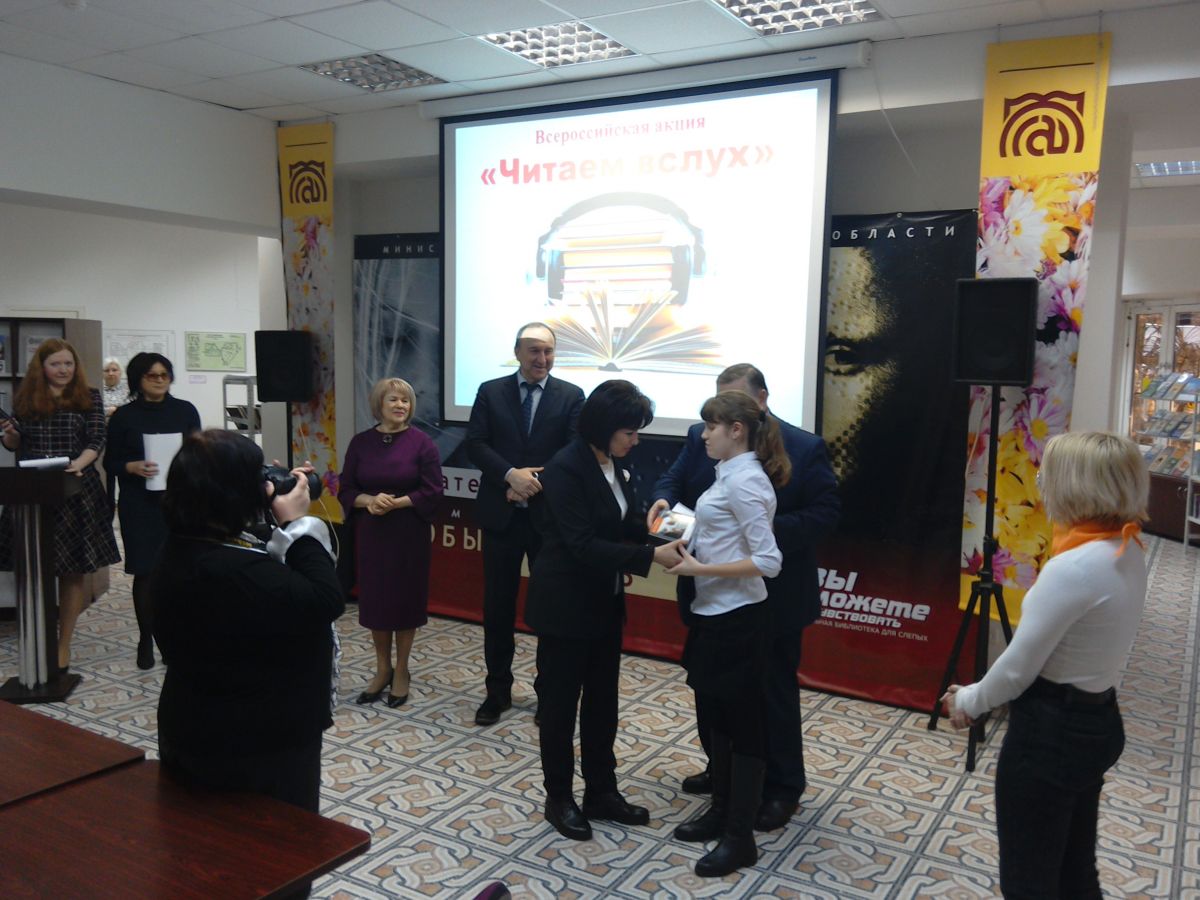В этот день в библиотеке состоялось торжественное вручение тифлофлешплееров читателям, которые были получены библиотекой благодаря поддержке некоммерческой организации «Благотворительный фонд “ЛУКОЙЛ”». Это один из первых корпоративных фондов в современной России — создан в 1993 году по инициативе руководства ПАО «ЛУКОЙЛ» как основной инструмент для реализации социально-благотворительных программ Компании в регионах ее деятельности.