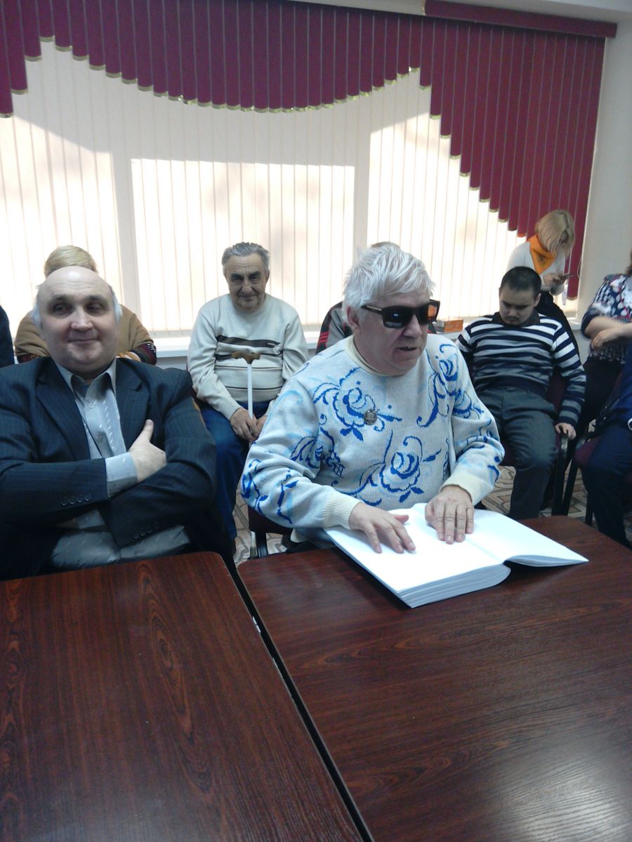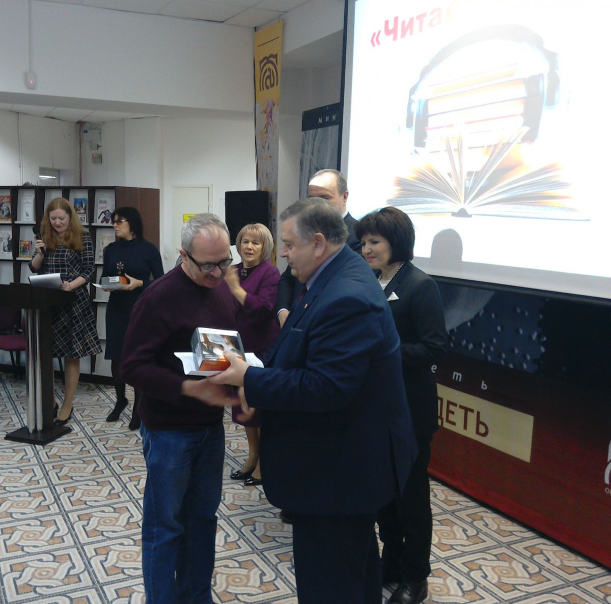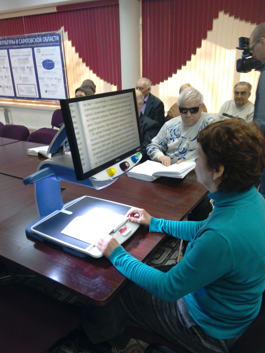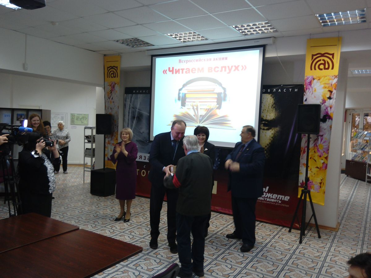 Тифлофлешплееры читателям вручили председатель профсоюзной организации ООО «Саратоворгсинтез» Т.С. Коганова, финансовый директор ООО «Саратоворгсинтез» В.В. Поляков, ветеран компании «Лукойл» И.И. Должников.