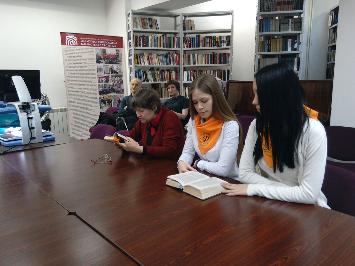 7 марта 2019 года в ГУК «Областная специальная библиотека для слепых» в Детском парке прошла акция «Читаем вслух» ко Всемирному дню чтения вслух.
