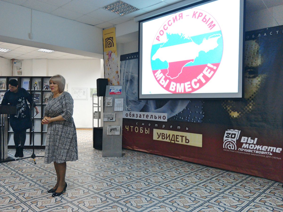 18 марта 2019 год в ГУК «Областная специальная библиотека для слепых» в Детском парке прошло комплексное мероприятие «Россия и Крым навсегда», посвящённое 5-летию воссоединения Крыма и России.