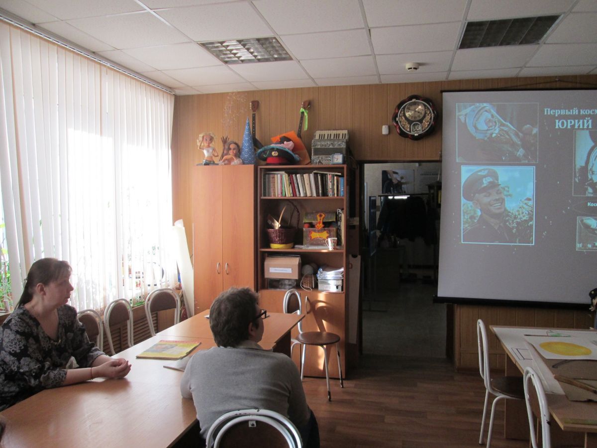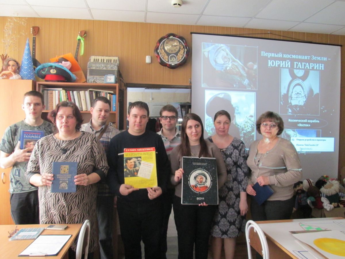 Ведущие мероприятия Т. Власова и М. Ефименко рассказали молодым людям из клуба «Белая ворона» о нелегком детстве первого Космонавта в годы Великой Отечественной войны, о его учебе и подготовке в отряде космонавтов, о значении саратовского края в его судьбе. Ребята увидели отрывки из фильмов о важных моментах жизни, о том, как шел к своей мечте Герой, проложивший путь к звёздам и изменивший всю историю человечества. Благодаря видеоклипу на песню Ю. Визбора «В кабинете Гагарина тихо…» все «побывали» в рабочем кабинете Юрия Гагарина в Звездном городке.