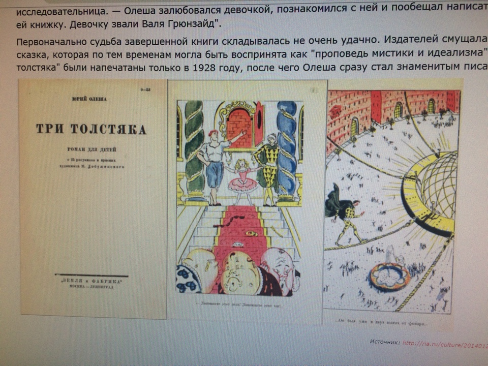 Интересно, Юрий Карлович написал сказку за восемь месяцев, ночуя в редакции на газетной бумаге. Увлекательная книга «Три Толстяка» была сразу принята детьми и продолжает оставаться любимым детским чтением. Сказка переведена на 17 языков мира, по ней написана пьеса, поставлен балет, сняты художественные фильмы и мультфильмы.