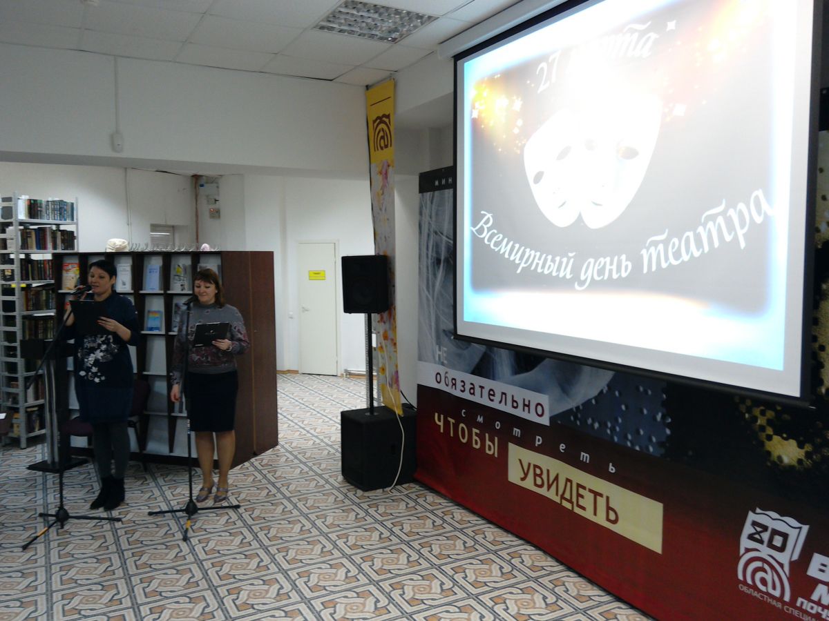 27 марта 2019 года в ГУК «Областная специальная библиотека для слепых» прошло комплексное мероприятие «Его Величество – Театр», посвящённое Международному дню театра, в рамках Года театра в России и в рамках Всероссийской акции «Культурный минимум».