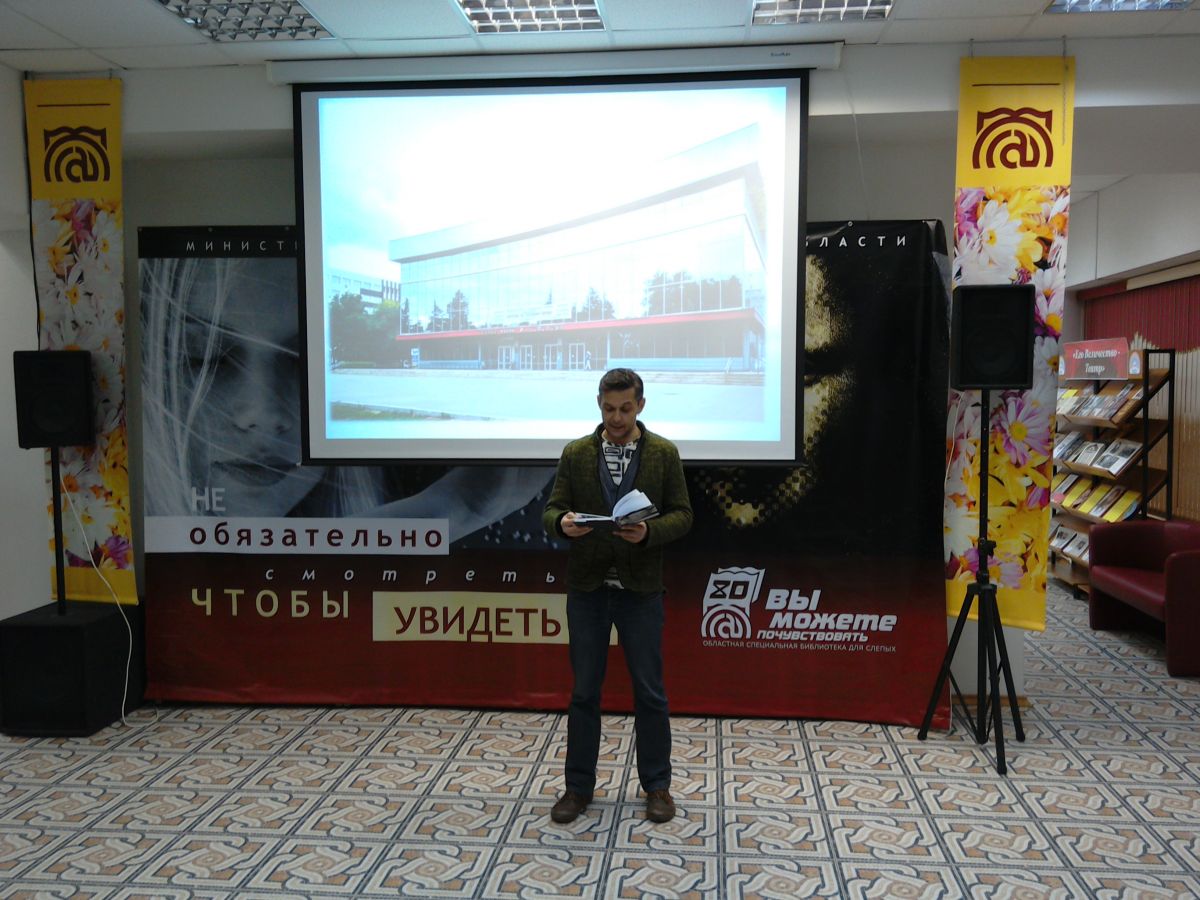 Гостем библиотеки стал актёр Саратовского государственного академического театра драмы им. И.А. Слонова Андрей Седов. Он представил читателям книгу воспоминаний о выдающемся актёре Олеге Янковском «Ах, как бы начало вернуть: Олег Янковский в Саратове», изданной Областной специальной библиотекой для слепых в специальном формате для незрячих и слабовидящих. Несколько экземпляров книги на специальных носителях были подарены Саратовскому государственному академическому театру драмы им. И.А. Слонова.