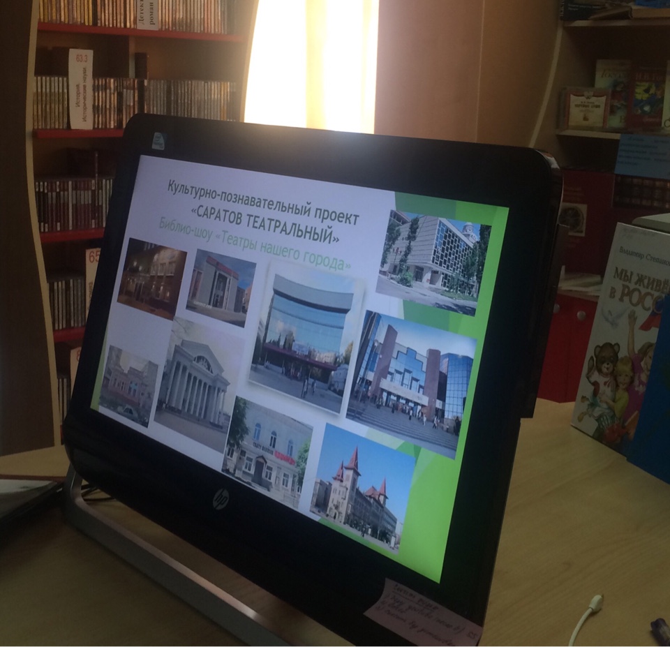 В детском филиале Саратовской областной специальной библиотеки для слепых в рамках культурно-познавательного проекта «Саратов театральный» состоялось библио-шоу «Театры нашего города». Участниками мероприятия стали учащиеся 10-12-х классов ГБОУ СО «Школа-интернат АОП № 3 города Саратова» со своими учителями Пилецкой М.А. и Чариковой Н.И.