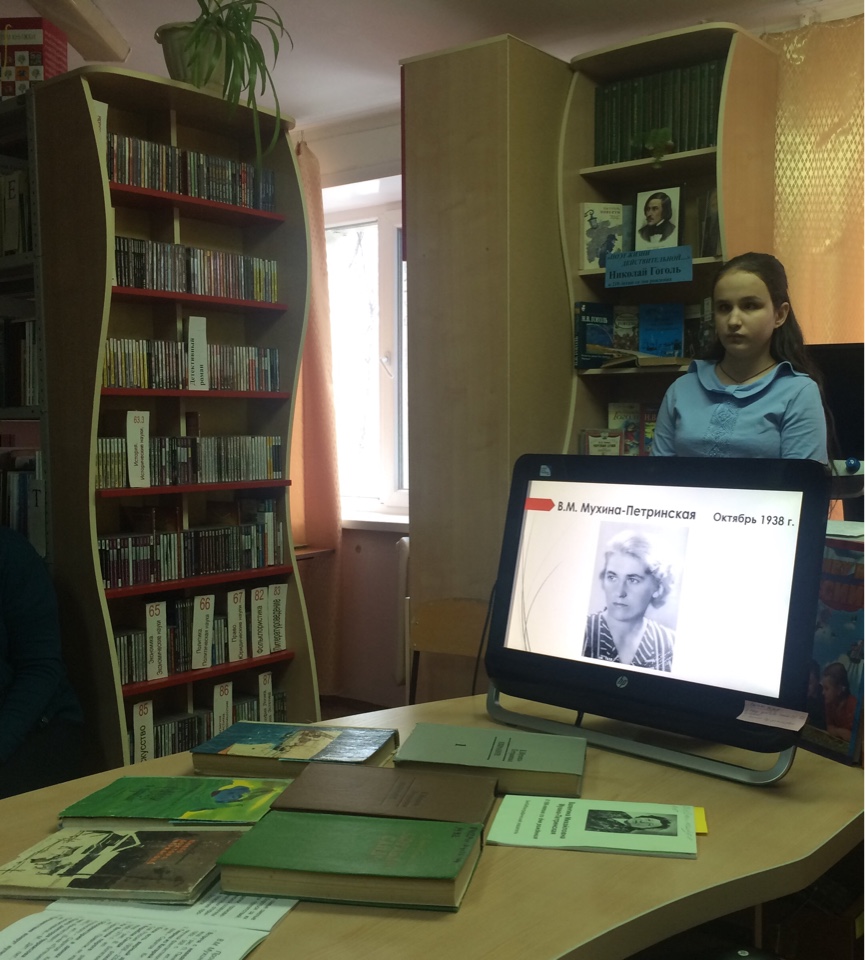 В детском филиале Саратовской областной библиотеки для слепых с начала 2019 года успешно реализуется совместный с историко-краеведческим центром «Наследие» проект – краеведческий альманах «Кем и чем славен наш город». Беседа-диалог «НЕИСПРАВИМЫЙ РОМАНТИК…», посвященная 110-летию со дня рождения детской писательницы, нашей землячки Валентины Мухиной – Петринской, состоялась для учащихся средних классов ГБОУ СО «Школа-интернат АОП № 3 города Саратова»