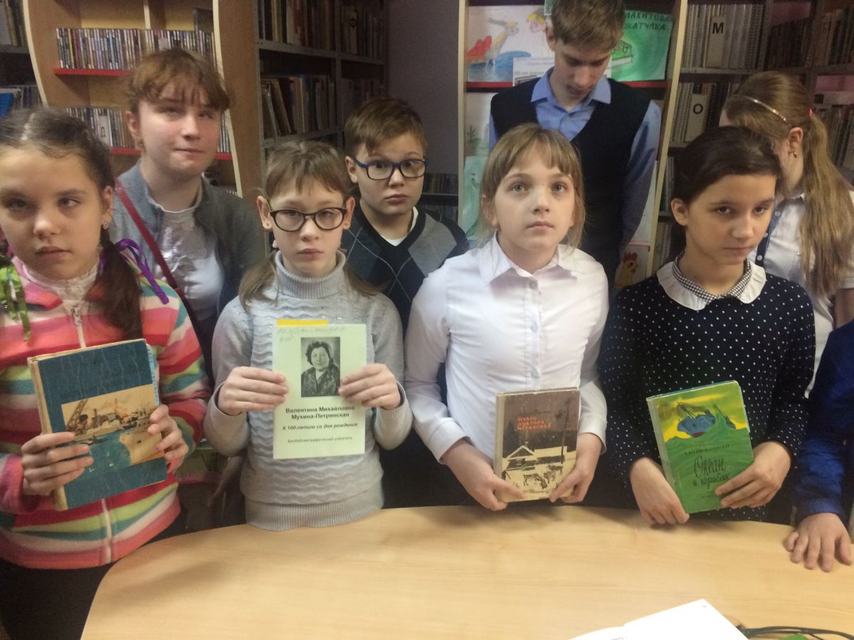 Заведующая детским филиалом Попова Л.Л. познакомила ребят с творчеством писательницы и рассказала о её замечательных книгах- это «Корабли Санди», «Океан и кораблик», «Планета Харис», «Путешествие вокруг вулкана» и др. Семиклассники прослушали отрывки из книги Мухиной-Петринской «Корабли Санди». Ребята узнали, что этот роман, впервые вышедший в 1966 году, был отмечен на Всероссийском конкурсе на лучшее художественное произведение для детей. Эта книга о том, как много испытаний предстоит пережить юным героям. Но всегда они шли честным, справедливым путём, помогая всем нуждающимся.