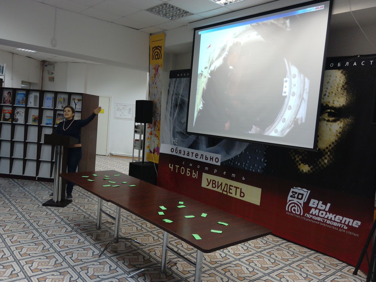 В Областной специальной библиотеке для слепых во Всемирный день авиации и космонавтики состоялось «Большое космическое путешествие» для учащихся 4 класса СОШ № 2. Путешествие началось с книжной выставки «Сын Земли: Юрий Алексеевич Гагарин». Выставка была представлена литературой в плоскопечатном и в специальных форматах. Специалист библиотеки подготовил яркую презентацию выставки, из документальной повести В.Каца ребята услышали слова Юрия Гагарина, первого космонавта: «Город Саратов я по праву могу считать своей второй родиной, городом моей юности … Именно с Саратовом связано появление у меня … неудержимой тяги в небо, тяги к полетам».