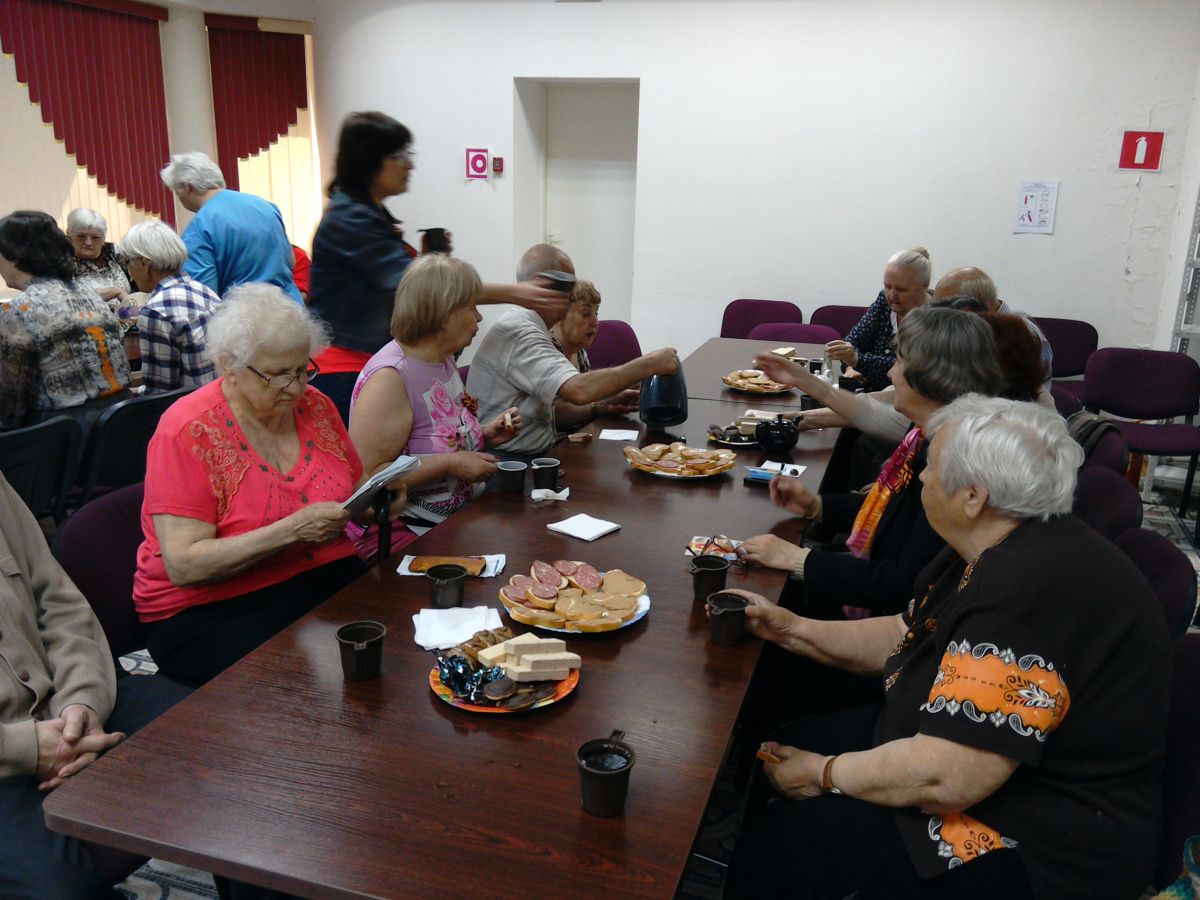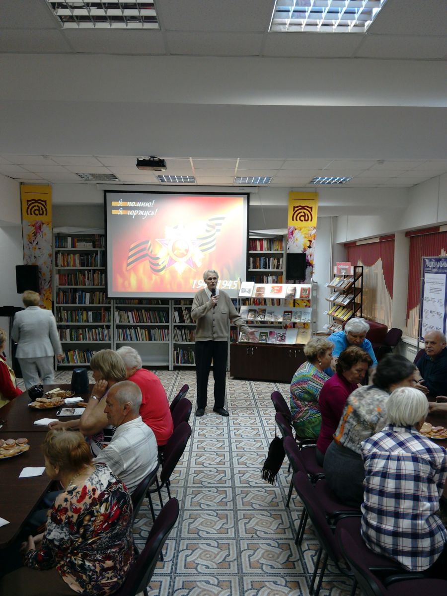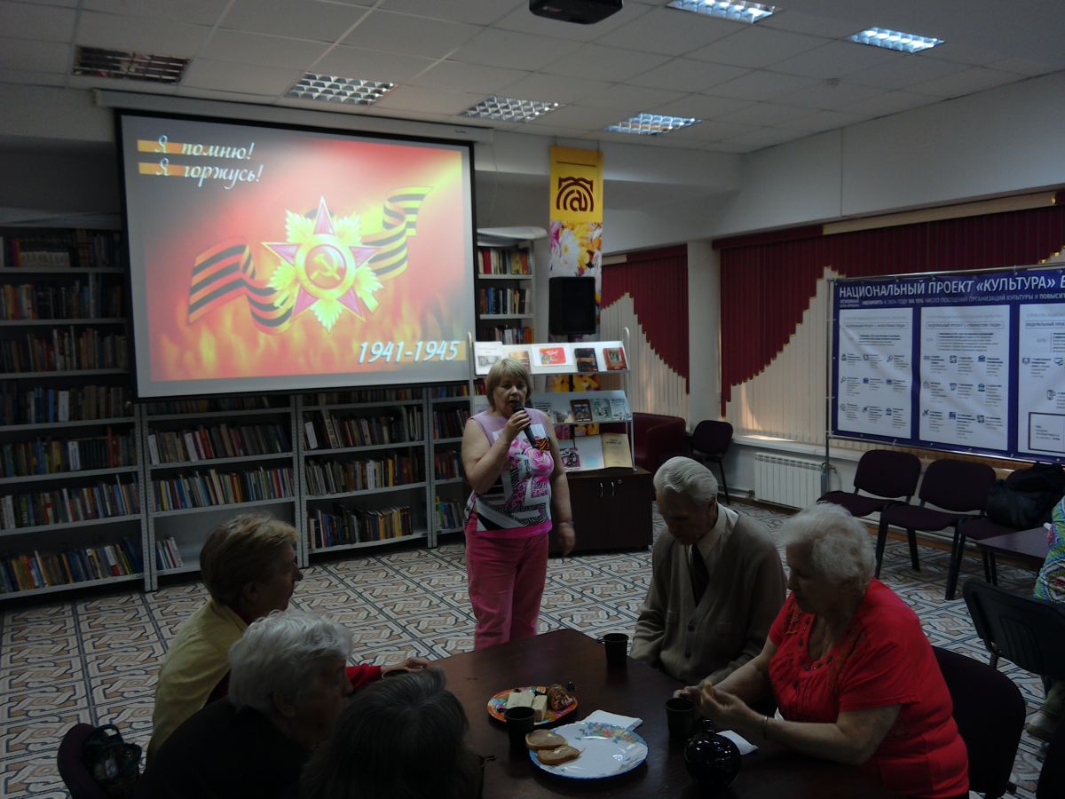 Директор Областной специальной библиотеки для слепых Ольга Новикова поздравила всех присутствующих с наступающим праздником. Читатель библиотеки Сергей Иванов исполнил песни «На стену, под знамя», «Про танкистов», «Туман, туман», «Бухенвальдский набат», читательница Валентина Матросова – песни военной тематики, звучали стихи о войне.