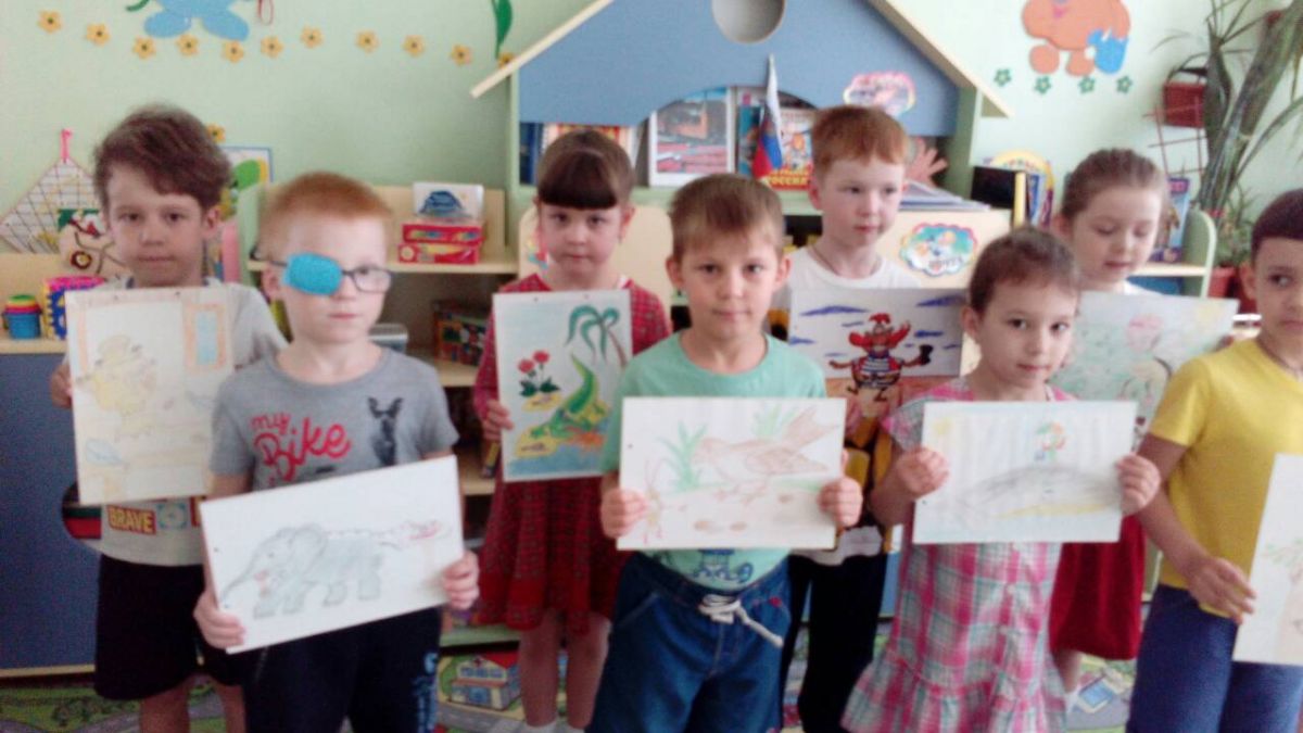 Малыши из детского сада компенсирующего вида № 3 «Радуга» (для детей с нарушениями зрения) приняли участие в «библиогастролях» виртуально: отвечали на вопросы присланной библиотекой литературной викторины своими рисунками.