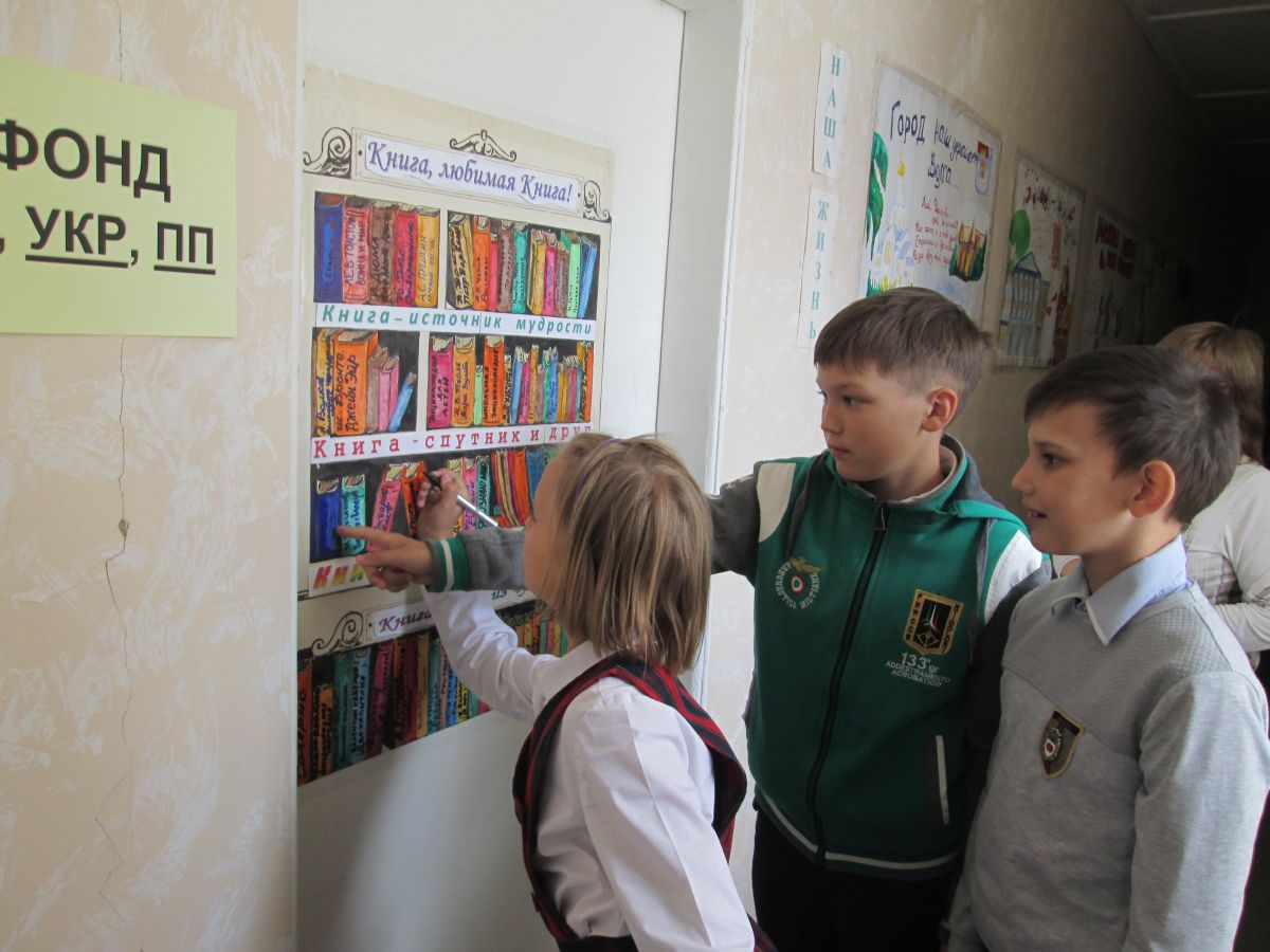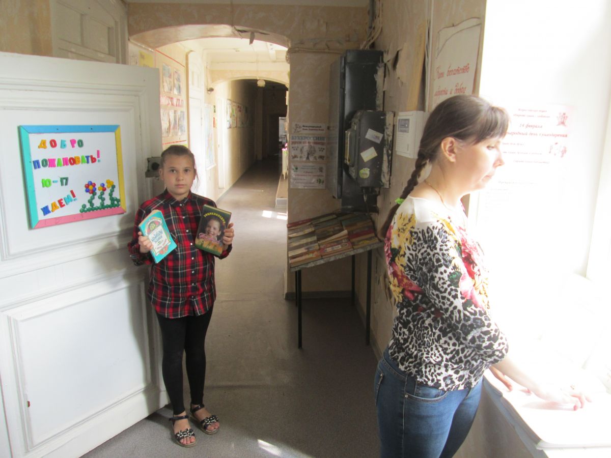 Программа «гастролей» Книги была яркой и разносторонней: много интересного рассказала и показала Книга своим друзьям. Читатели, в свою очередь, не остались в долгу. Учащиеся МАОУ СОШ №7 – давние партнеры библиотеки по творческим затеям – под руководством заведующей школьной библиотекой Марины Хачпановой с энтузиазмом взялись помочь в оформлении «библиогастролей». Евгения Головачёва (9А), Ксения Казакова (10А) и Полина Чернышева (9Б) по эскизу библиотеки подготовили «книжный шкаф», а читатели «заполнили» его своими любимыми произведениями – записали книги, которые запомнились и полюбились: открыли новый мир, заставили задуматься, вызвали сильные эмоции.