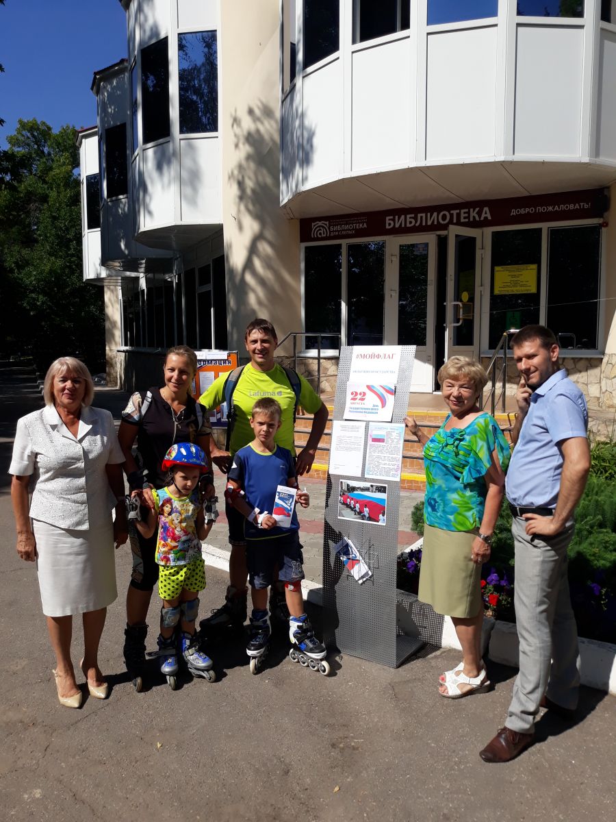 Директор библиотеки Ольга Новикова поздравила всех присутствующих с праздником и сказала, что день флага – это праздник всех поколений россиян, дань уважения истории великой страны. Трехцветный стяг неразрывно связан со становлением государства, он стал символом военных побед и достижений. 22 августа все россияне празднуют День флага Российской Федерации.