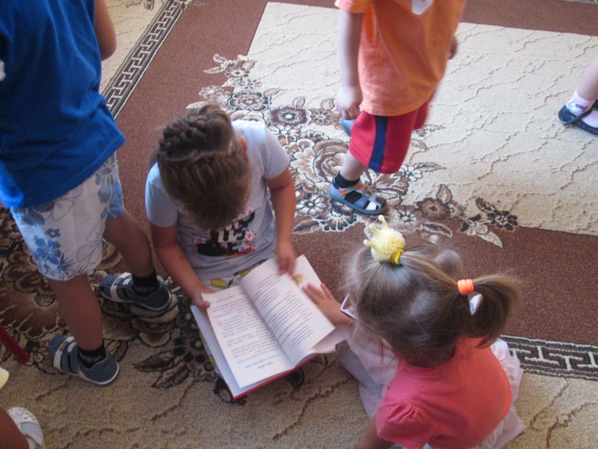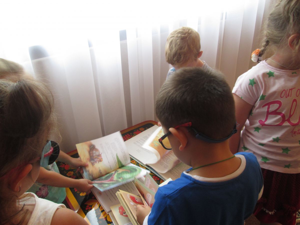 Во время физминутки для глаз малыши «полетали» с облаками и дружно спели любимую песню жителей страны Тили-мили-трямдия. Затем, закрыв глаза, послушали короткие сказки обо всем на свете, представляя каждый по-своему, как выглядят «муравьиные города», «цыпленок вечером» и «скоро осень». В подарок библиотеке малыши подарили свои рисунки по сказкам писателя, которые прочитали вместе с воспитателями перед мероприятием.