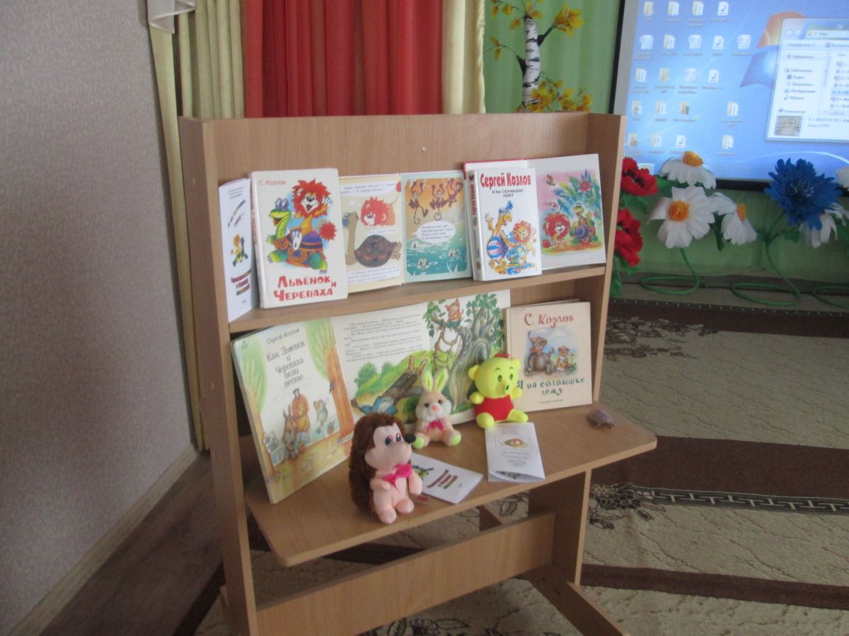 Юные читатели из «Радуги» познакомились с творчеством весёлого поэта и мечтательного сказочника. Из мультфрагментов узнали, откуда берутся облака, кто помогает звездам оставаться красивыми и яркими, как ловить на удочку луну и солнце. В игре «Правда, мы будем всегда?» дети нашли «в тумане» Волшебного леса героев книг Козлова и проводили их на выставку-сказку «Однажды в солнечный день».