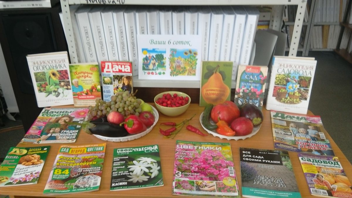 Читателям была предложена книжная выставка «Ваши 6 соток», а также не только посмотреть, но и угоститься дарами сада сотрудников библиотеки – садоводов-любителей: Т.И. Забавниковой, Н.П. Терехова, О.В. Есиной, Т.М. Козиной.