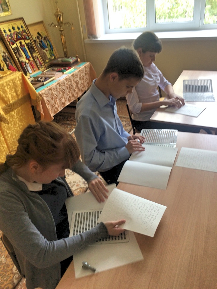 30 сентября 2019 года в Детском филиале ГУК «Областная специальная библиотека для слепых», расположенном на территории ГБОУ СО «Школа-интернат для обучающихся по адаптированным образовательным программам №3 г. Саратова», состоялись два этапа Областного конкурса среди людей с нарушениями зрения «Великое шеститочие: книги о Великой Отечественной войне» - «Письмо по Брайлю» - конкурс письменных заданий и «Чтение по Брайлю» - конкурс чтецов по Брайлю.