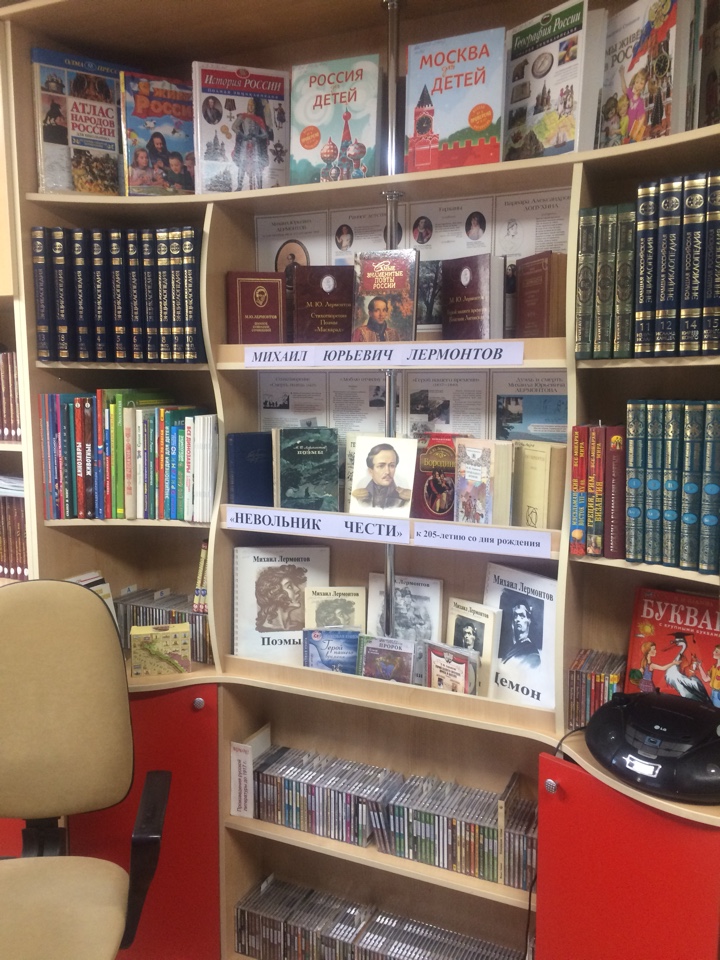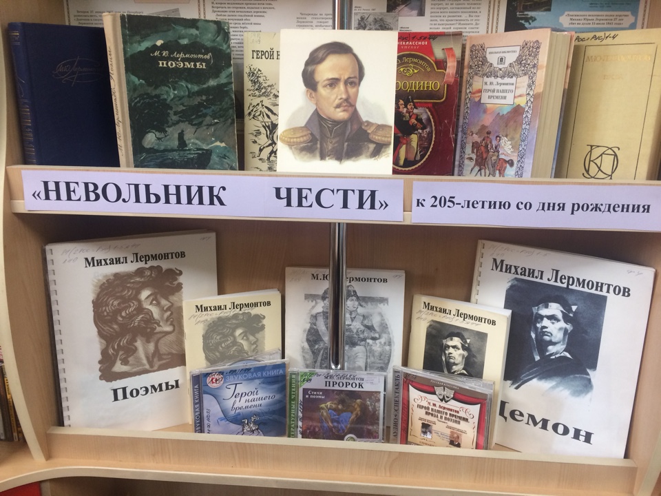 Детский филиал ГУК «Областная специальная библиотека для слепых» приглашает своих читателей на книжно-иллюстративную выставку «Невольник чести», посвящённую 205-летию русского поэта. Материалы выставки позволят гостям библиотеки вспомнить замечательные произведения М.Ю. Лермонтова, перелистать страницы его биографии, познакомиться с малоизвестными фактами из жизни и творчества выдающегося русского писателя и поэта. Это своеобразная экскурсия в удивительный мир стихов и прозы и путешествие по излюбленным местам поэта, вдохновившим его на создание замечательных произведений, любимых многими поколениями читателей.