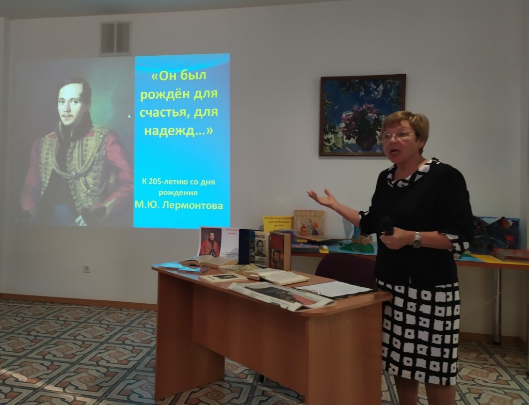 В библиотеке развёрнута книжная выставка «Мятежный пророк» к 205-летию со дня рождения М.Ю. Лермонтова, на который представлены произведения автора на различных носителях, а также материалы о его жизни и творчестве.
