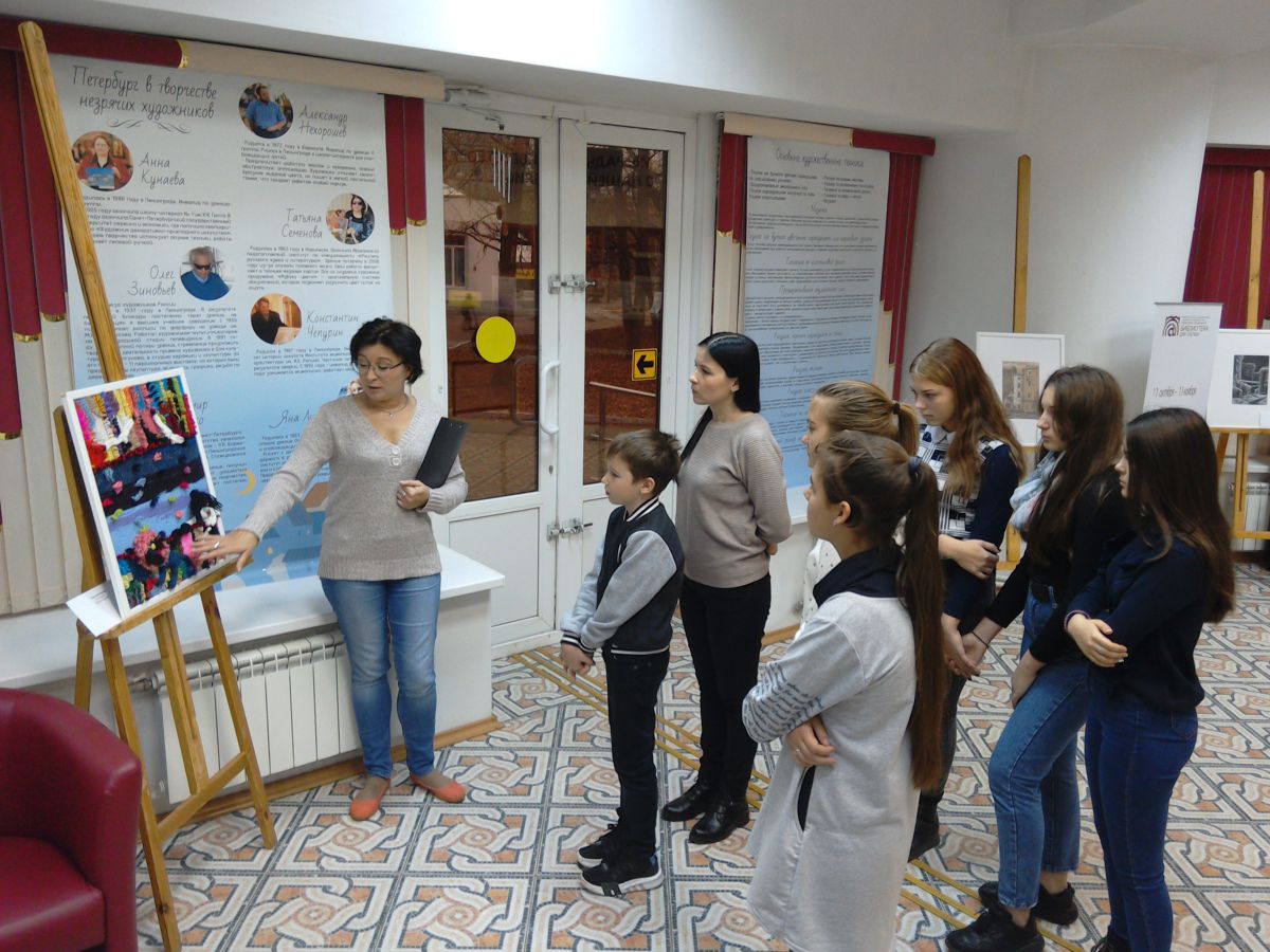 Для людей без проблем зрения будет интересно познакомиться с картинами слепых и слабовидящих художников Санкт-Петербурга, которые используя различные техники в своих работах, представили виды Санкт-Петербурга. Это Яна Лисина, Александр Нехорошев, Константин Чепурин, Олег Зиновьев, Татьяна Семенова, Владимир Ионенко, Анна Кунаева.Их работы представлены в разделе «Петербург глазами незрячих художников».