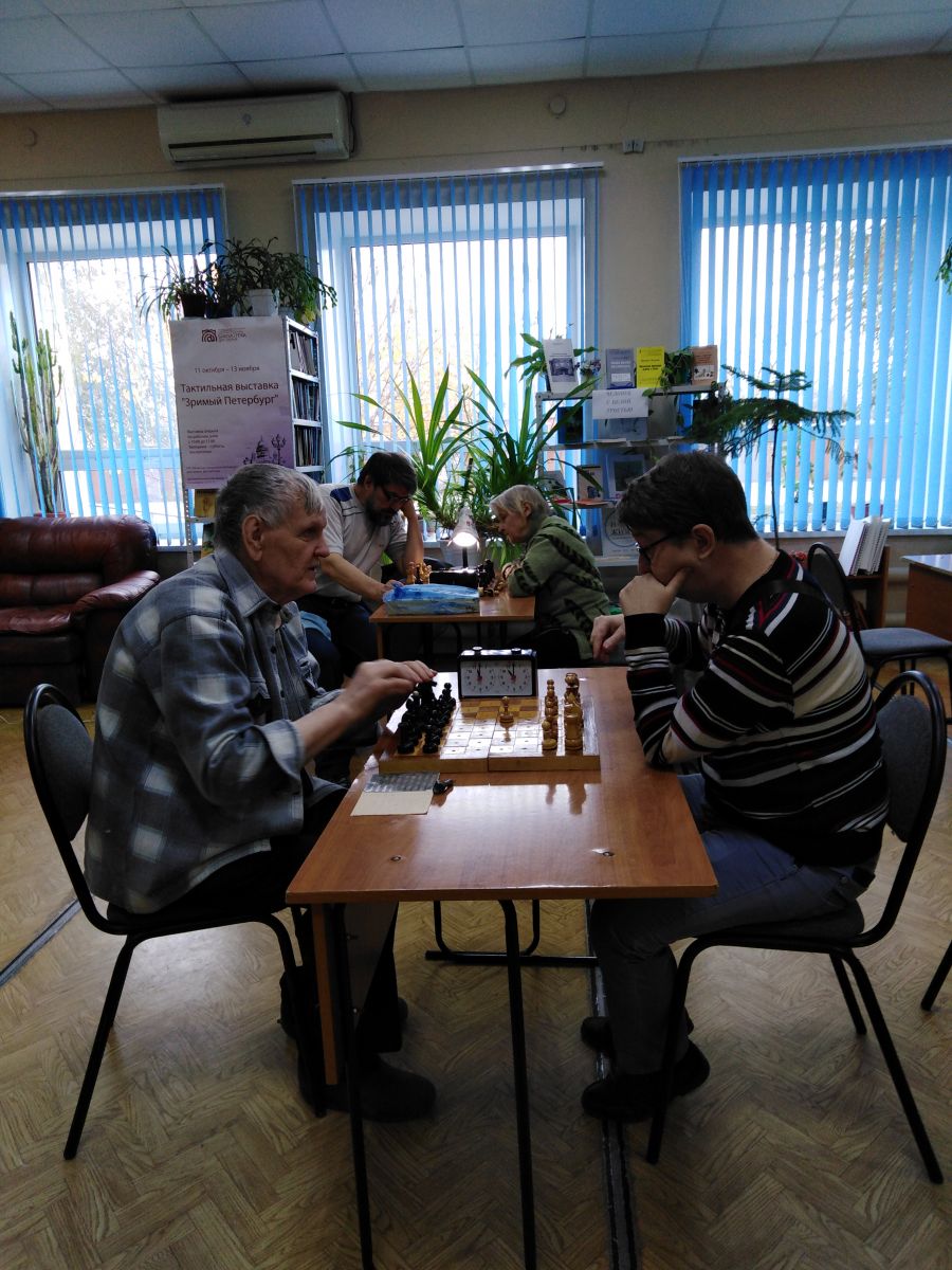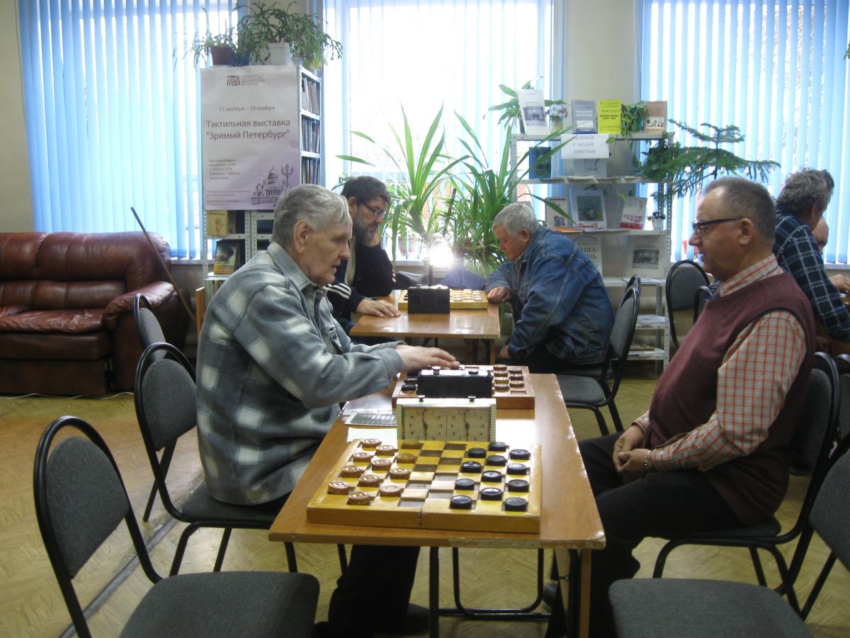 В Энгельсском филиале ГУК «Областная специальная библиотека для слепых» в рамках месячника белой трости и дня слепых прошел ежегодный шахматно-шашечный турнир среди членов ЭМО ВОС. В соревнованиях принимали участие 18 человек. Среди шахматистов 1 место заняла Баленкова Галина, 2 – Пыхтунов Василий, 3 – Кемешев Николай. В соревнованиях по шашкам 1 место – Горкунова Галина, 2 – Кемешев Николай, 3 – Борзилов Владимир.