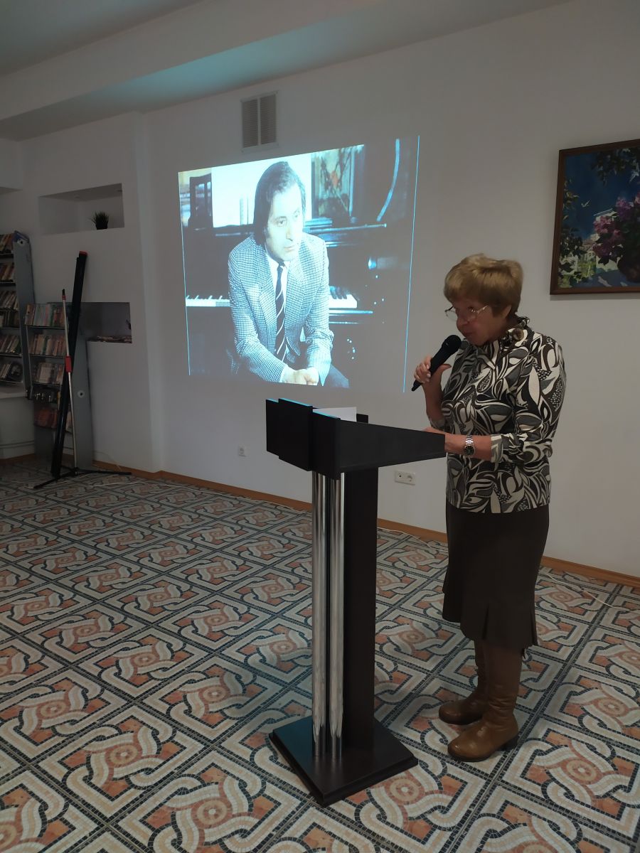 Ведущая мероприятия Татьяна Немцова познакомила читателей с биографией композитора, напомнила, что его имя носит Саратовская филармония, а на родине в городе Энгельсе ему установлен памятник.