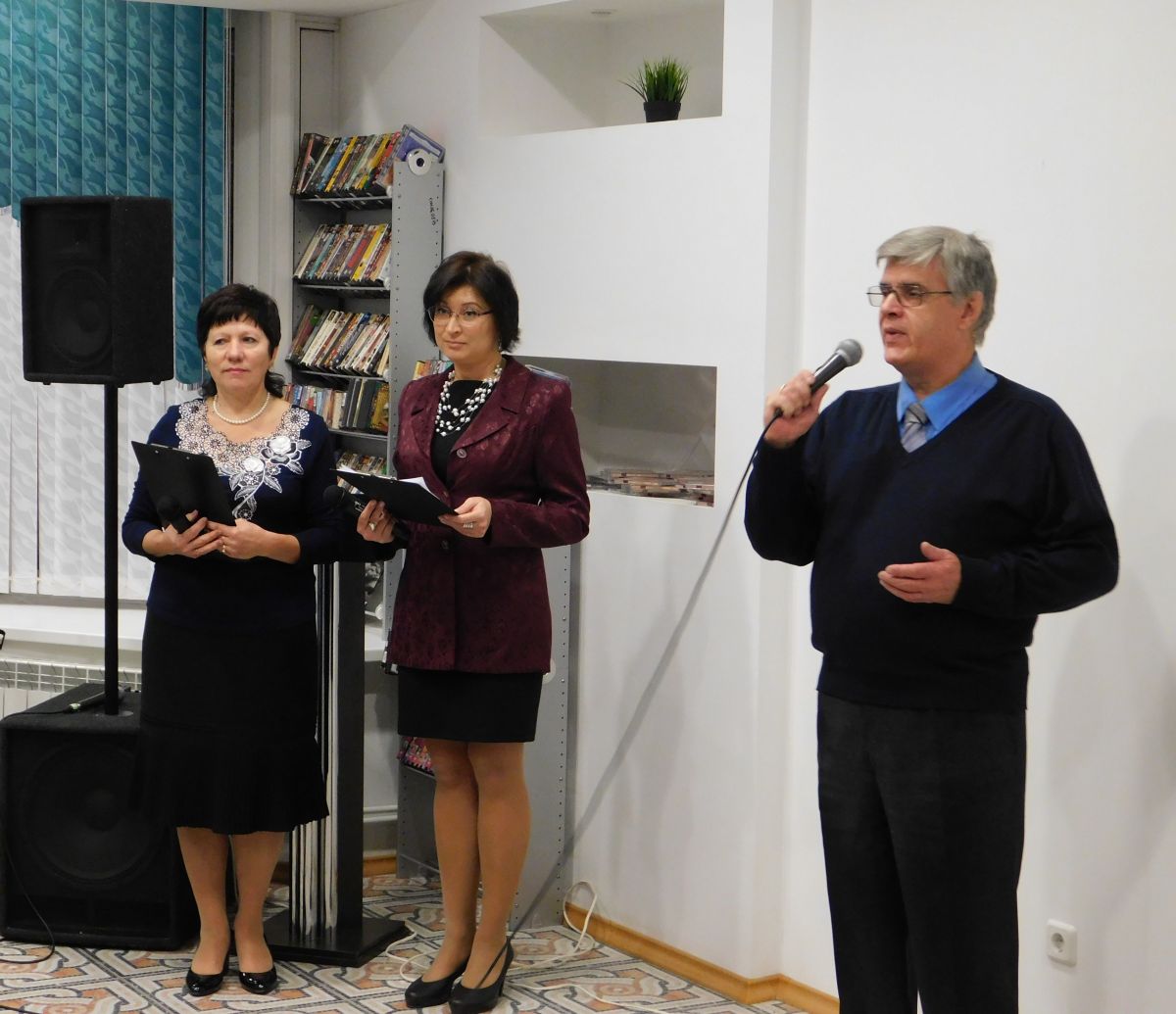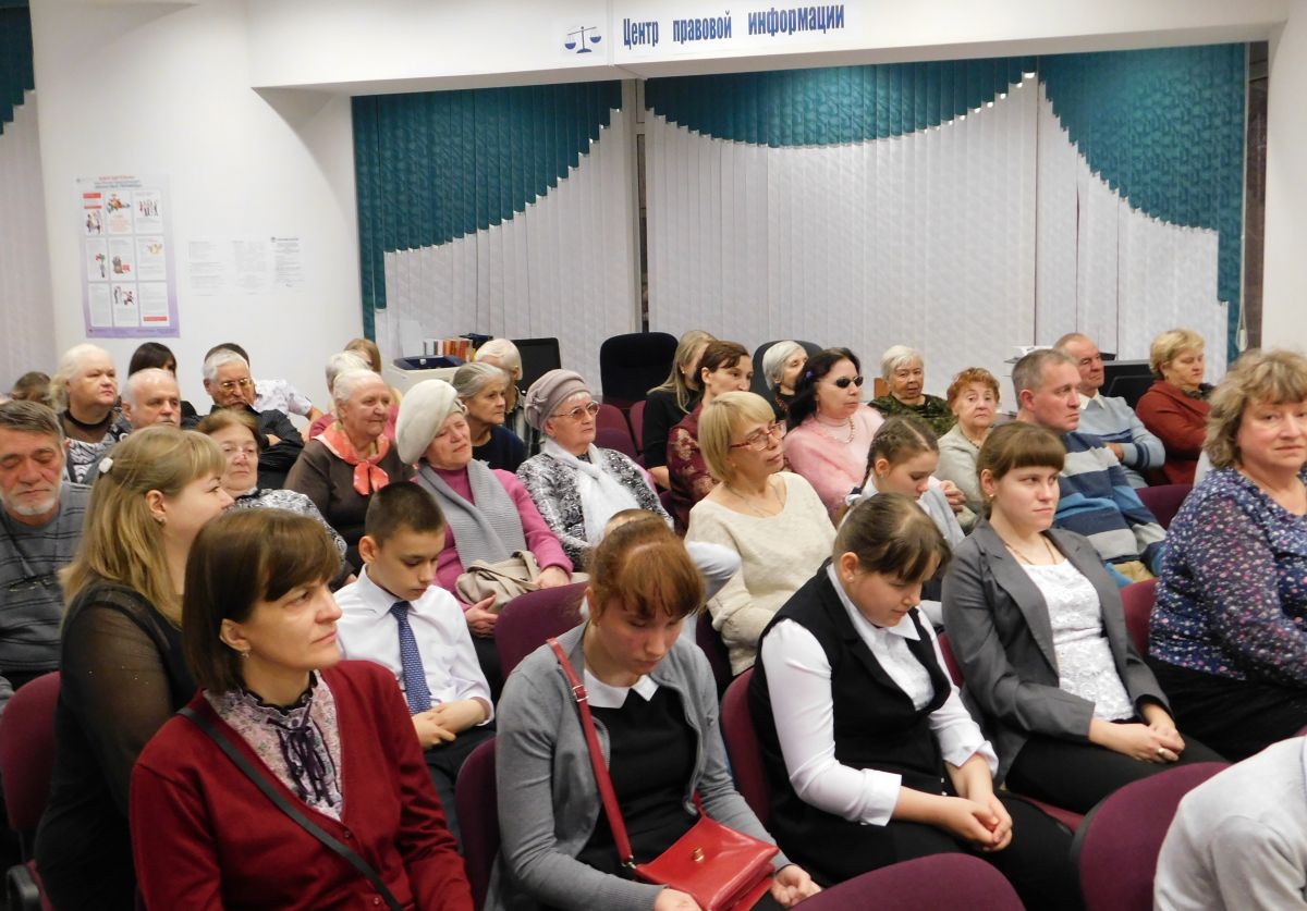 Ведущие мероприятия Мария Сидорова и Ольга Есина напомнили присутствующим историю появления Международного дня инвалида, рассказали об участии библиотеки во Всероссийской акции «Общегородской фестиваль “Эстафета доброты”», а затем началась торжественная церемония награждения победителей областного конкурса среди людей с нарушениями зрения «Великое шеститочие: книги о Великой Отечественной войне».