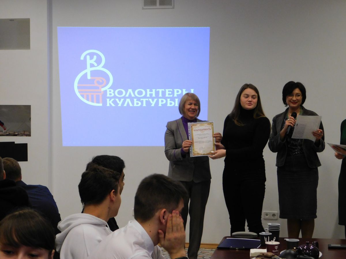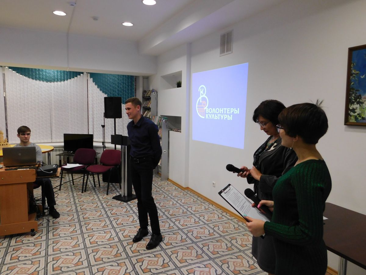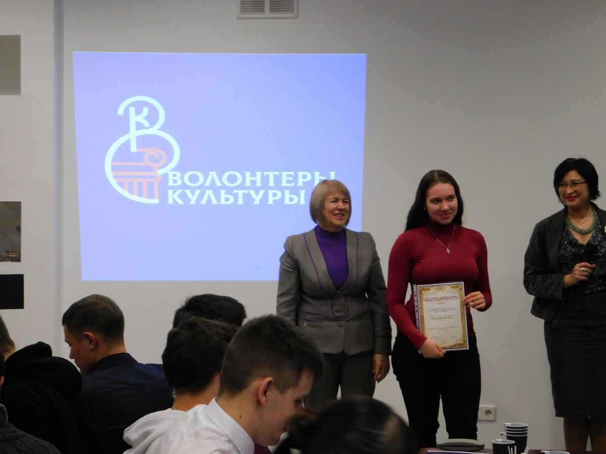 Ведущие мероприятия Мария Сидорова и Дарья Клименко рассказали об истории Международного дня добровольца, о работе интернет-портала добровольцыроссии.рф, о программе «Волонтёры культуры», реализуемой в рамках федерального проекта «Создание условий для реализации творческого потенциала нации» («Творческие люди») национального проекта «Культура».