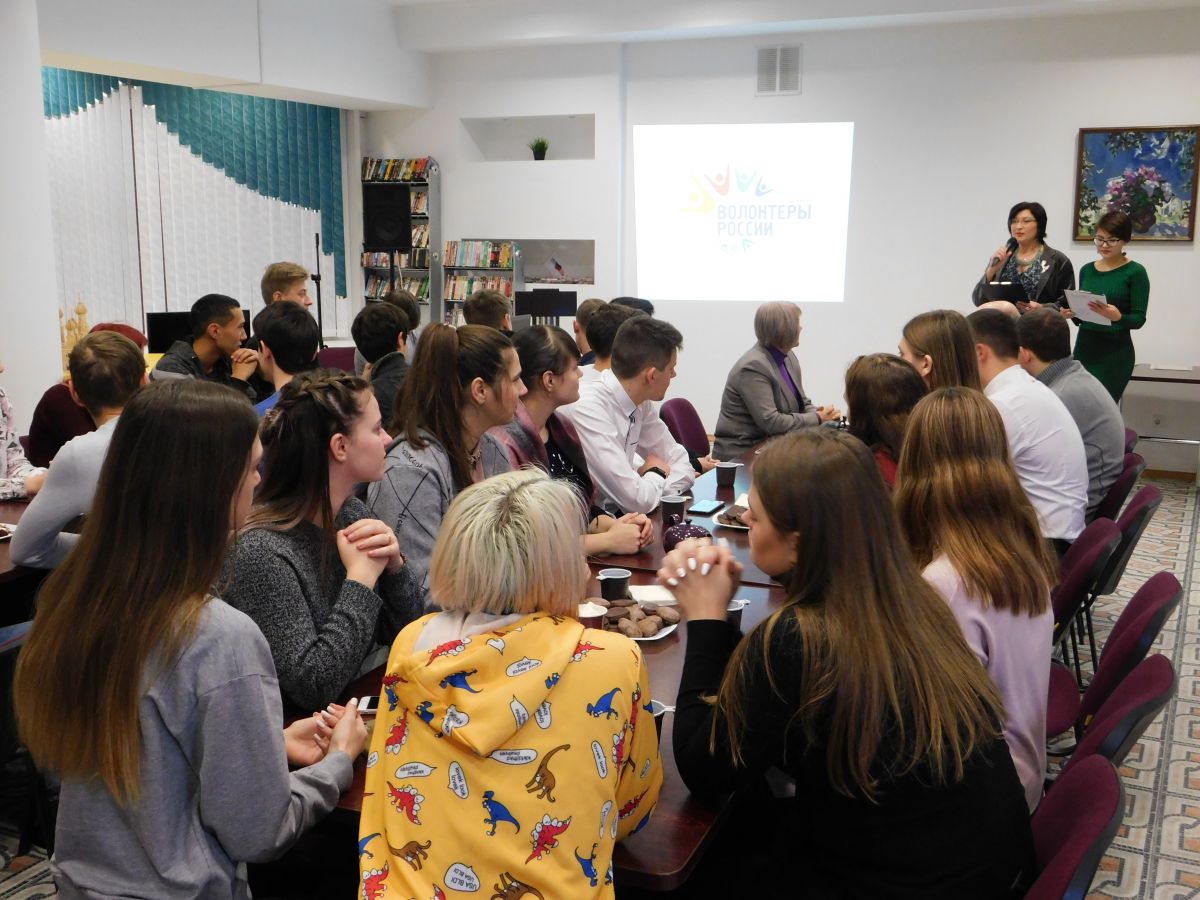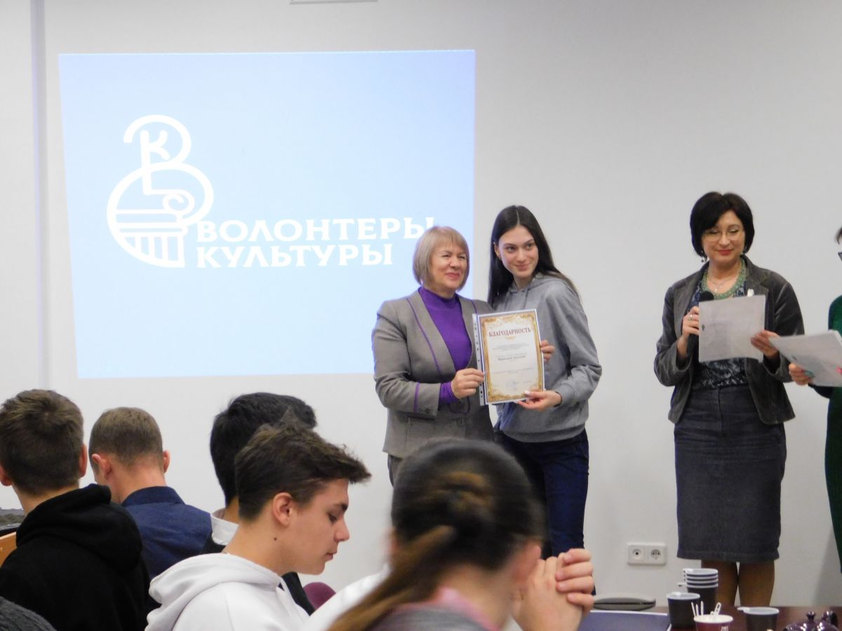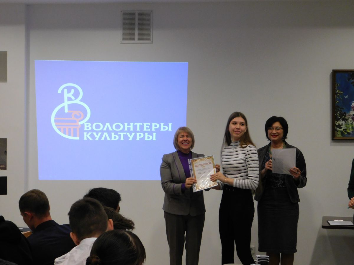 Ведущие мероприятия Мария Сидорова и Дарья Клименко рассказали об истории Международного дня добровольца, о работе интернет-портала добровольцыроссии.рф, о программе «Волонтёры культуры», реализуемой в рамках федерального проекта «Создание условий для реализации творческого потенциала нации» («Творческие люди») национального проекта «Культура».