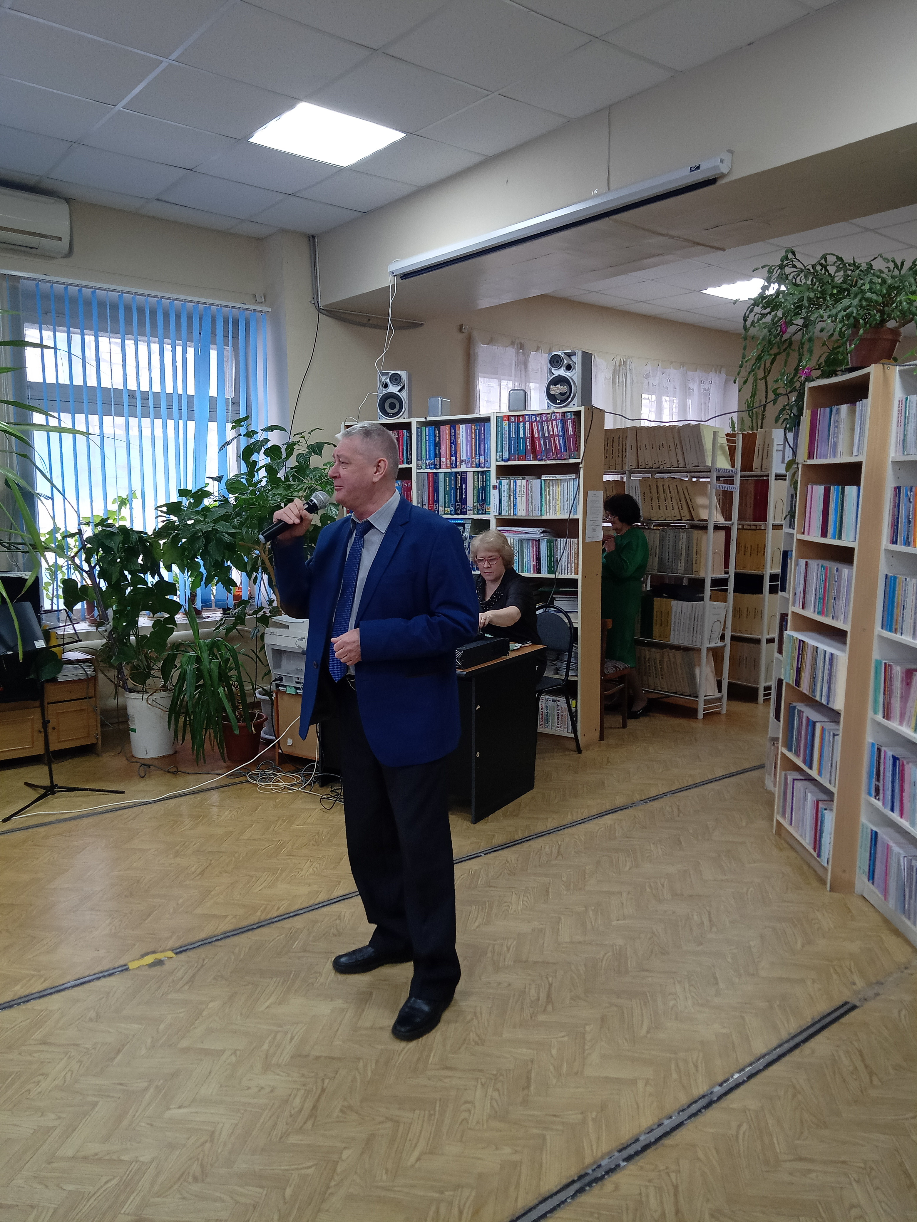 19 февраля в Энгельсском филиале ГУК «Областная специальная библиотека для слепых» прошёл литературно-музыкальный вечер ко Дню Защитника Отечества «Спасибо вам от всей земли, спасибо вам за всё, солдаты». В адрес всех мужчин, присутствовавших на мероприятии, прозвучали слова поздравлений с таким замечательным праздником от председателя ЭМО ВОС Владимира Киреева, который сам отслужил в рядах вооруженных сил нашей Родины. Стихи о мужчинах, солдатах прозвучали в исполнении Инги Прушакевич. Музыкальные номера представили солисты вокального ансамбля «Шлягер» - Ирина Букина, Александр Леонтьев, Владимир Жидков, Ольга Шибина, Татьяна Шутова и ансамбль «Русская песня» - руководитель Александр Шалаеав.