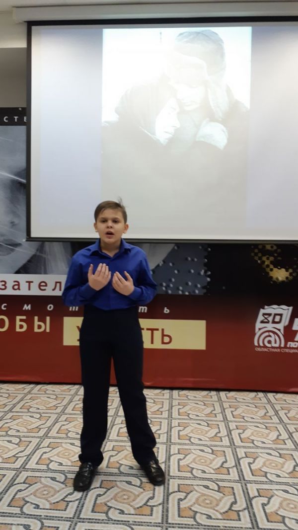 В начале мероприятия заведующий сектором по выпуску изданий для слепых и слабовидящих Геннадий Генералов в специальном формате шрифтом Брайля прочёл стихотворение «Наша армия», а Елена Волкова наизусть прочла стихотворения, посвящённые Дню защитника Отечества и учащийся музыкально-драматического тетра «Солнечный круг» Александр Плотников прочёл стихотворение «Ты помнишь, Алёша, дороги Смоленщины».