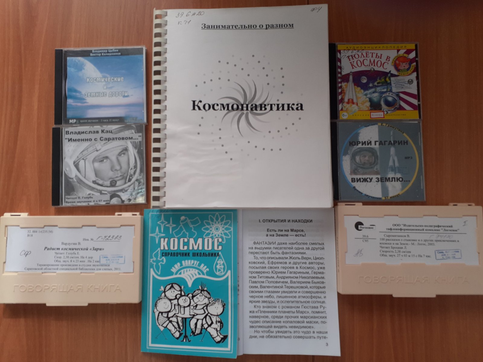 Областная специальная библиотека для слепых в преддверии праздника Дня космонавтики организовала книжно-иллюстративную выставку изданий в плоскопечатных форматах, а также в специальных форматах – «говорящие» книги на CD-дисках, флеш-картах, издания рельефно-точечным шрифтом Брайля, укрупнённым шрифтом, изданные сектором по выпуску изданий для слепых и слабовидящих нашей библиотеки. Традиционно эта выставка организована в окнах Областной специальной библиотеки для слепых по улице 1-я Садовая, д. 4.