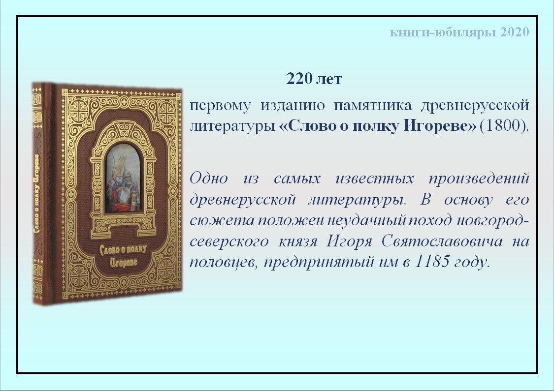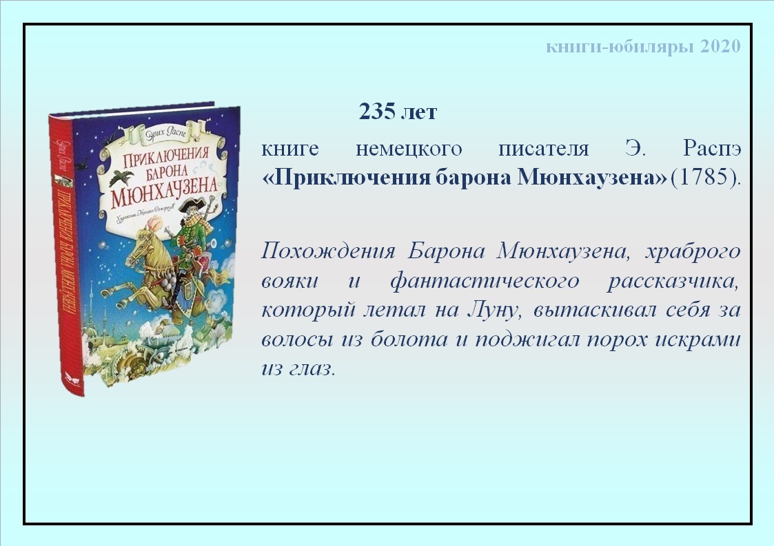 ГУК «Областная специальная библиотека для слепых» представляет виртуальный библиографический обзор «Книжная радуга», посвящённый книгам-юбилярам 2020 года.