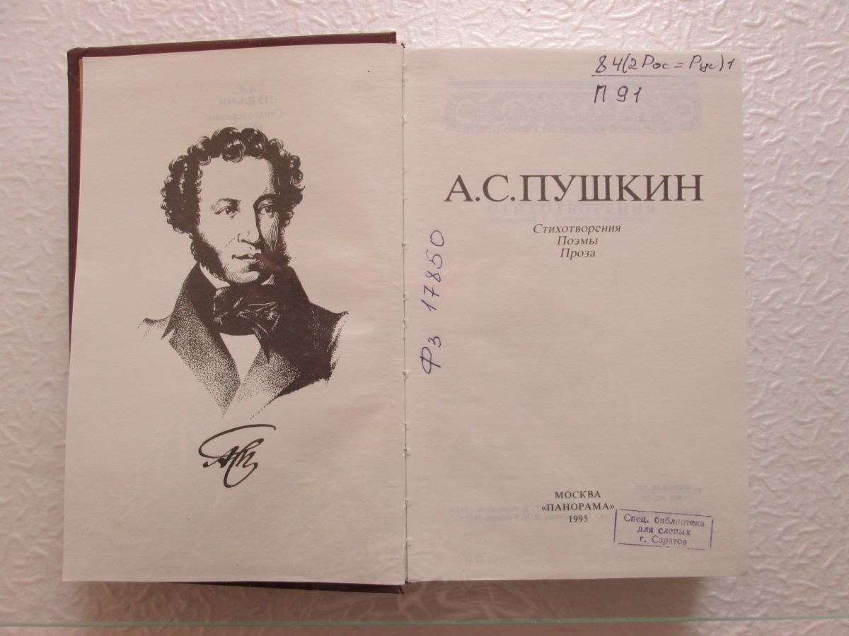 В Балаковском филиале Областной библиотеки для слепых читателей ждут книги с произведениями А. С. Пушкина, литература о поэте, материла для подготовки к урокам литературы на разных носителях.