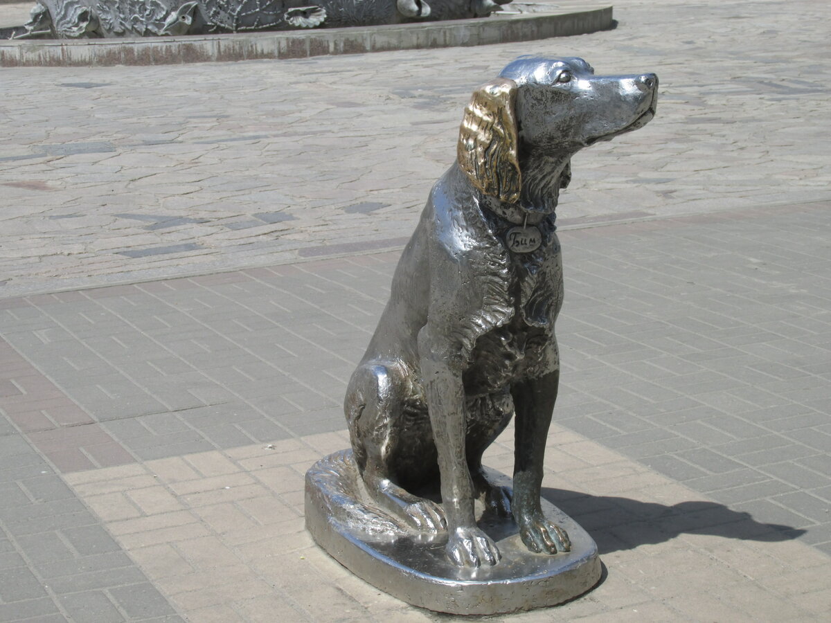 Перед кукольным театром в Воронеже сегодня есть памятник его самому известному литературному персонажу - псу Белый Бим Чёрное ухо.