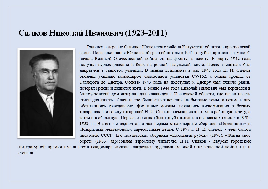 Цикл виртуальных выставок «Писатели и поэты-фронтовики, потерявшие зрение». Николай Иванович Силков (1923 – 2011)