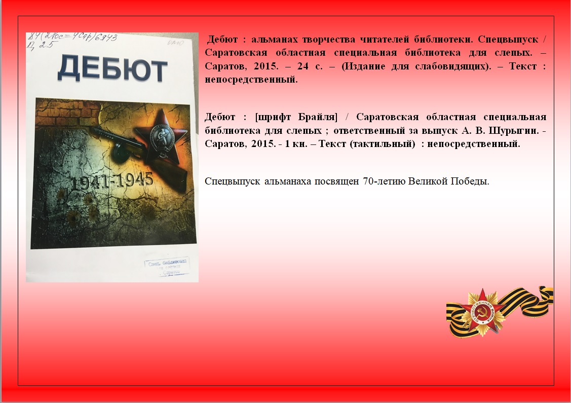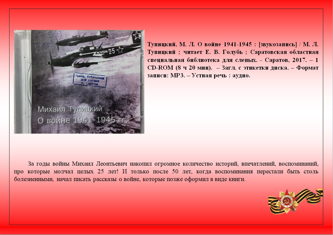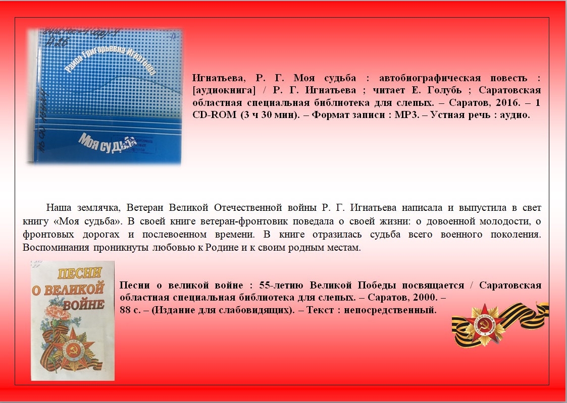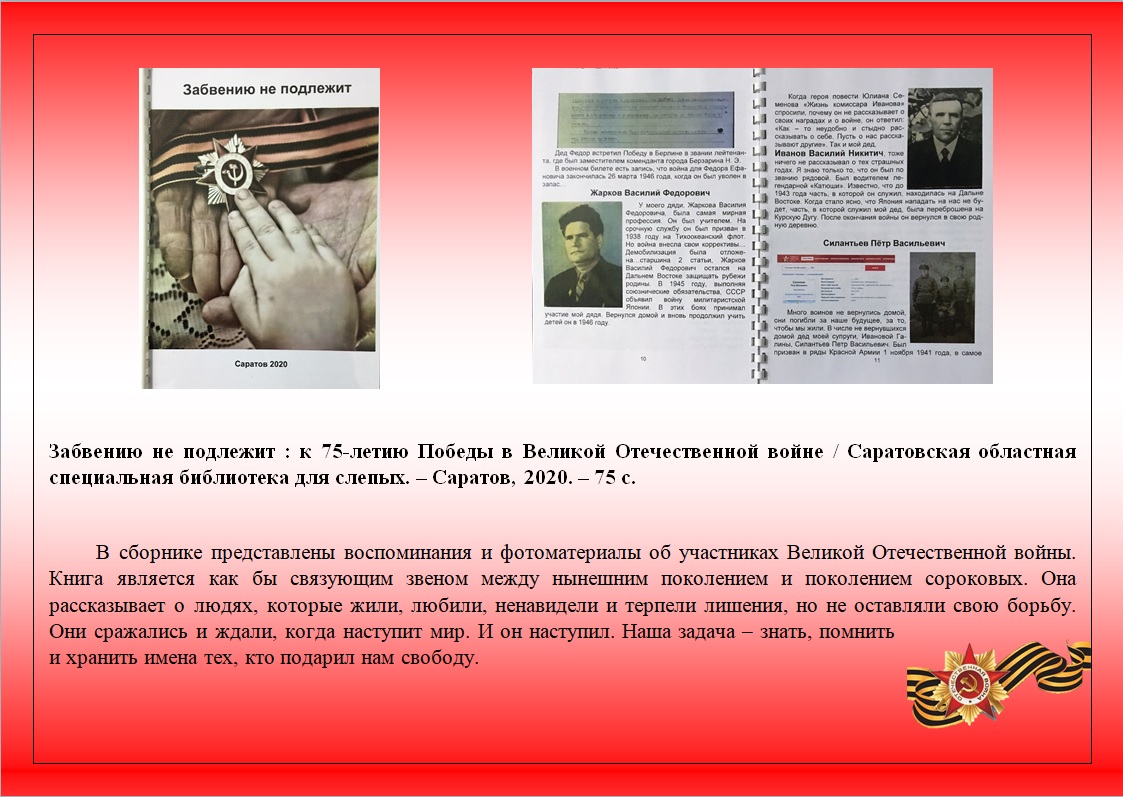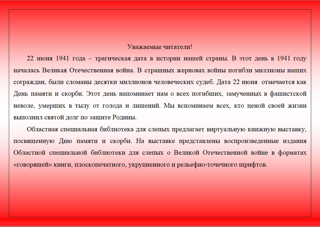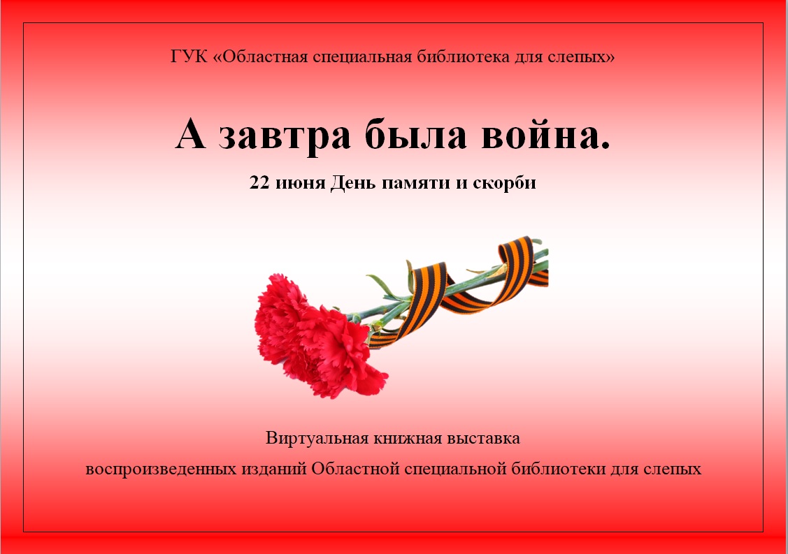 Представляем виртуальную книжную выставку воспроизведенных изданий Областной специальной библиотеки для слепых "А завтра была война" ко Дню памяти и скорби.