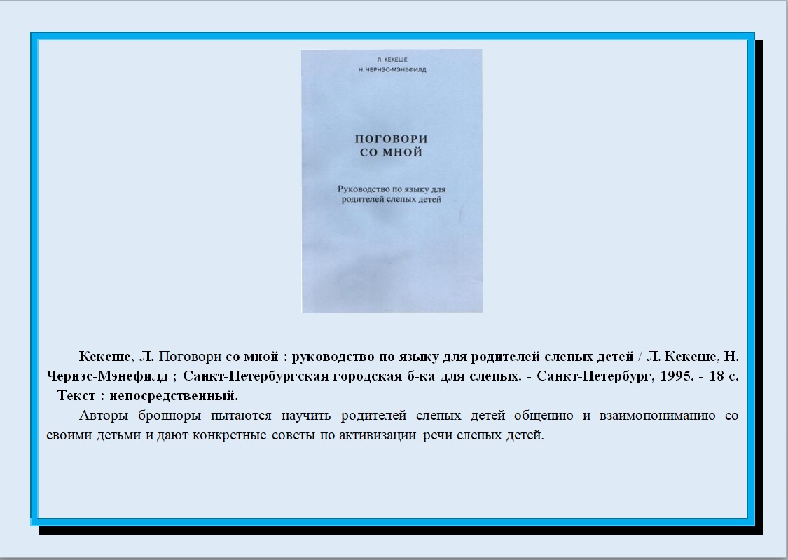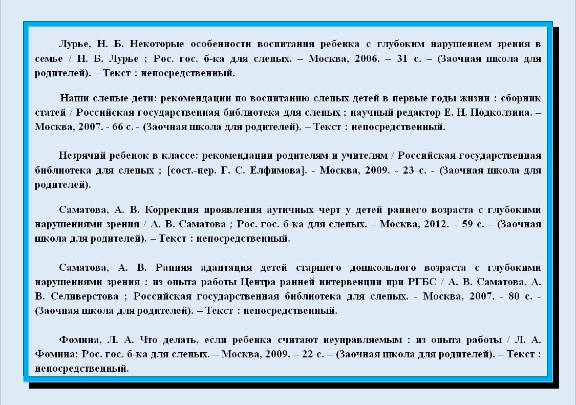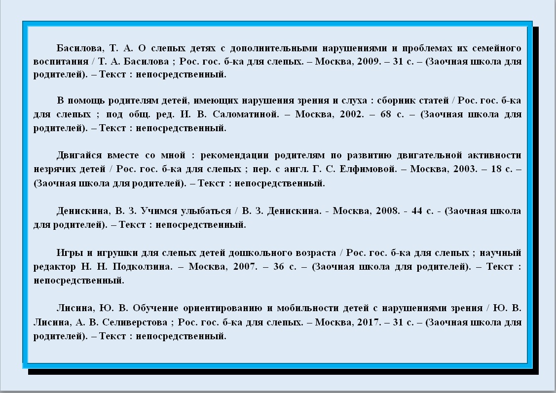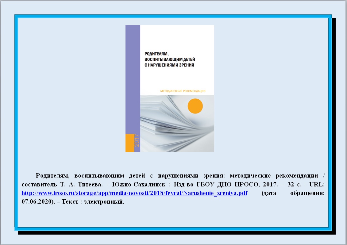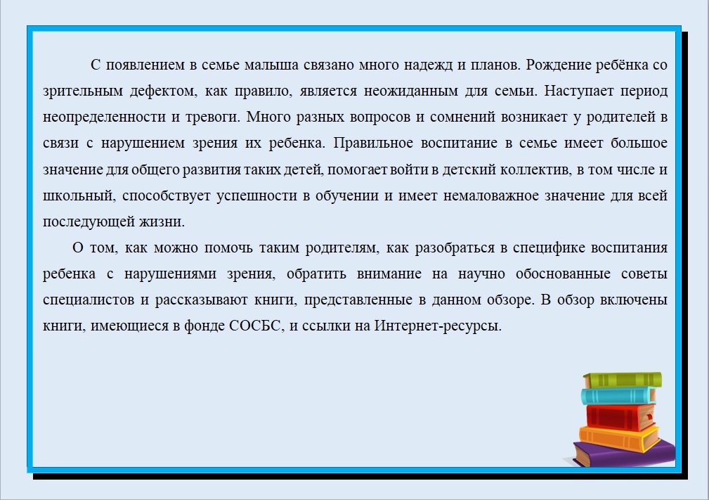 Библиографический обзор Для родителей детей с нарушениями зрения