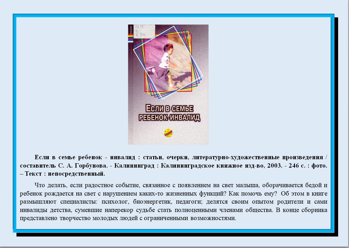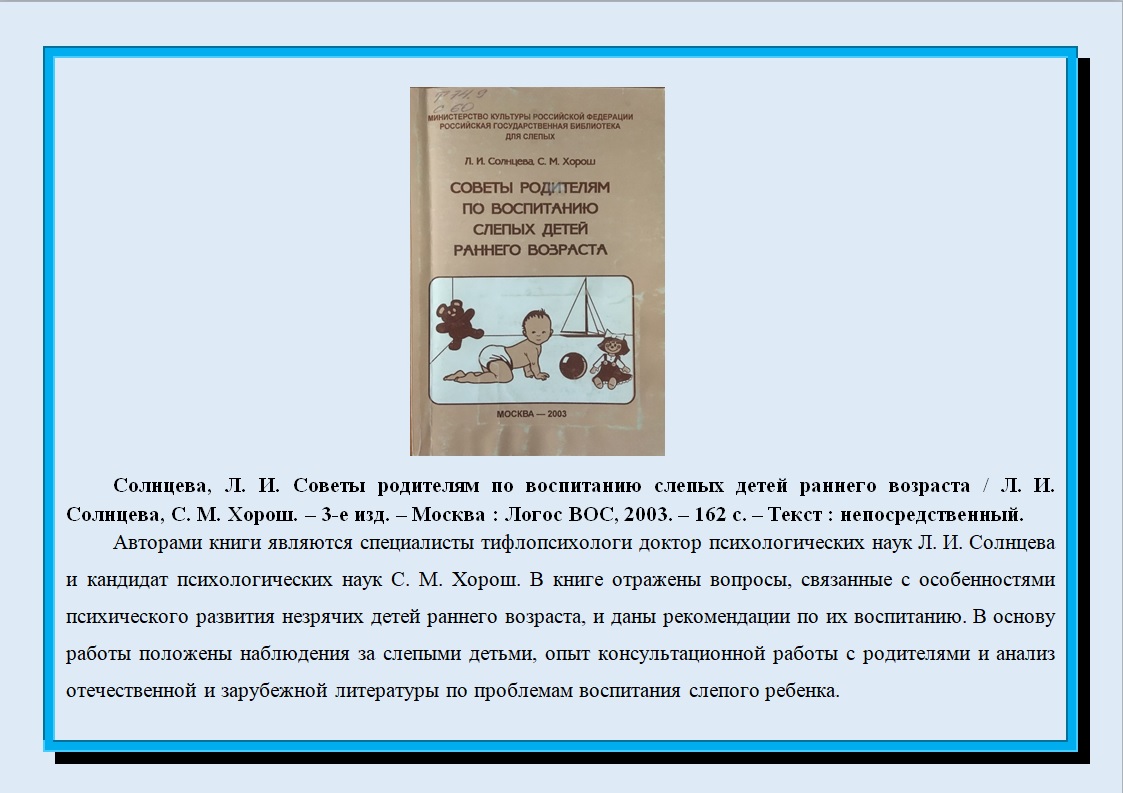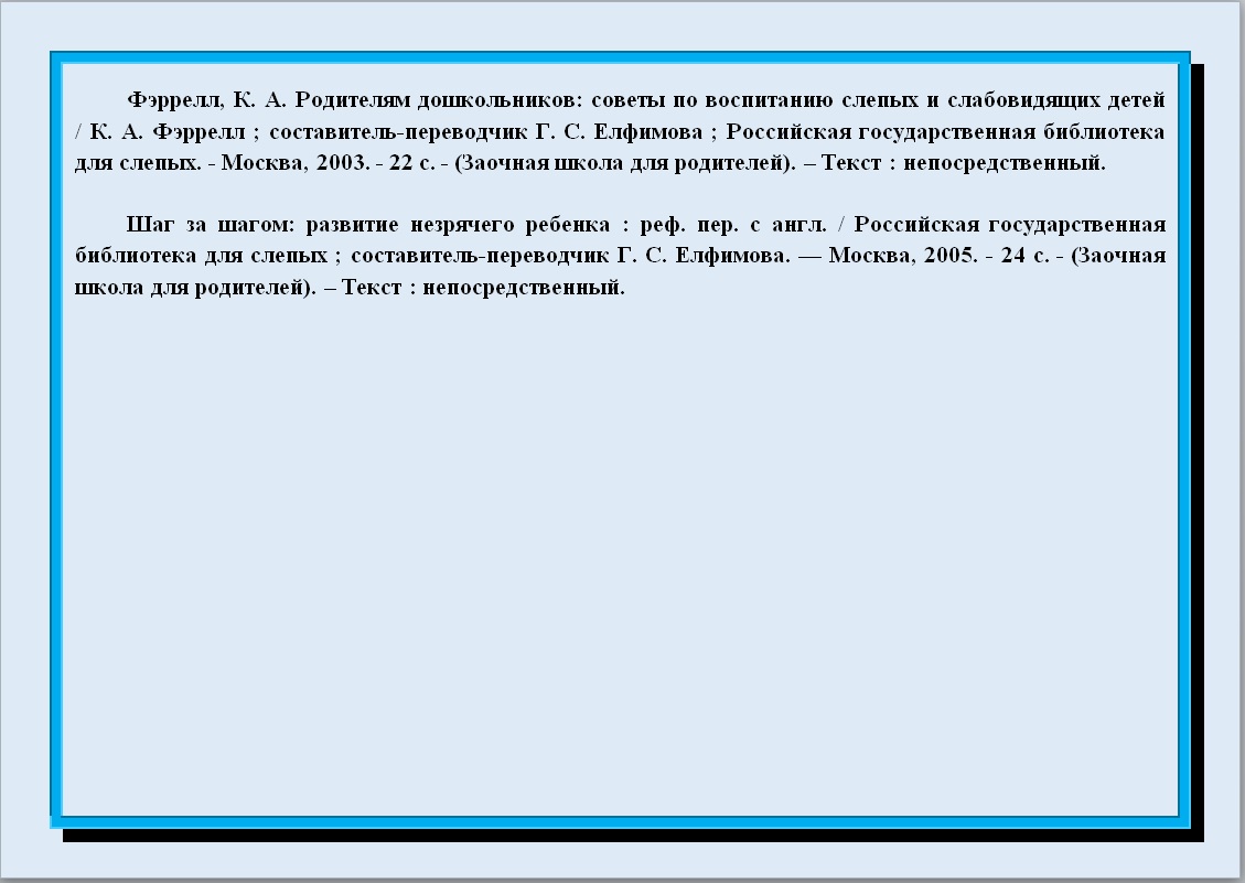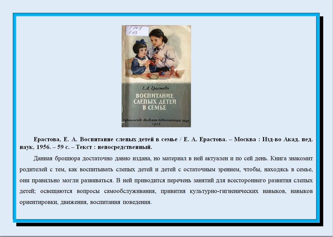 Библиографический обзор Для родителей детей с нарушениями зрения