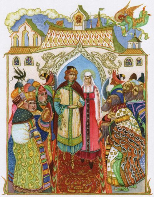 Вернулись князь с княгиней и сошлись в бою с колдуном, а помогла победить им в этой битве любовь и вера. Они были верны друг другу до конца своих дней.