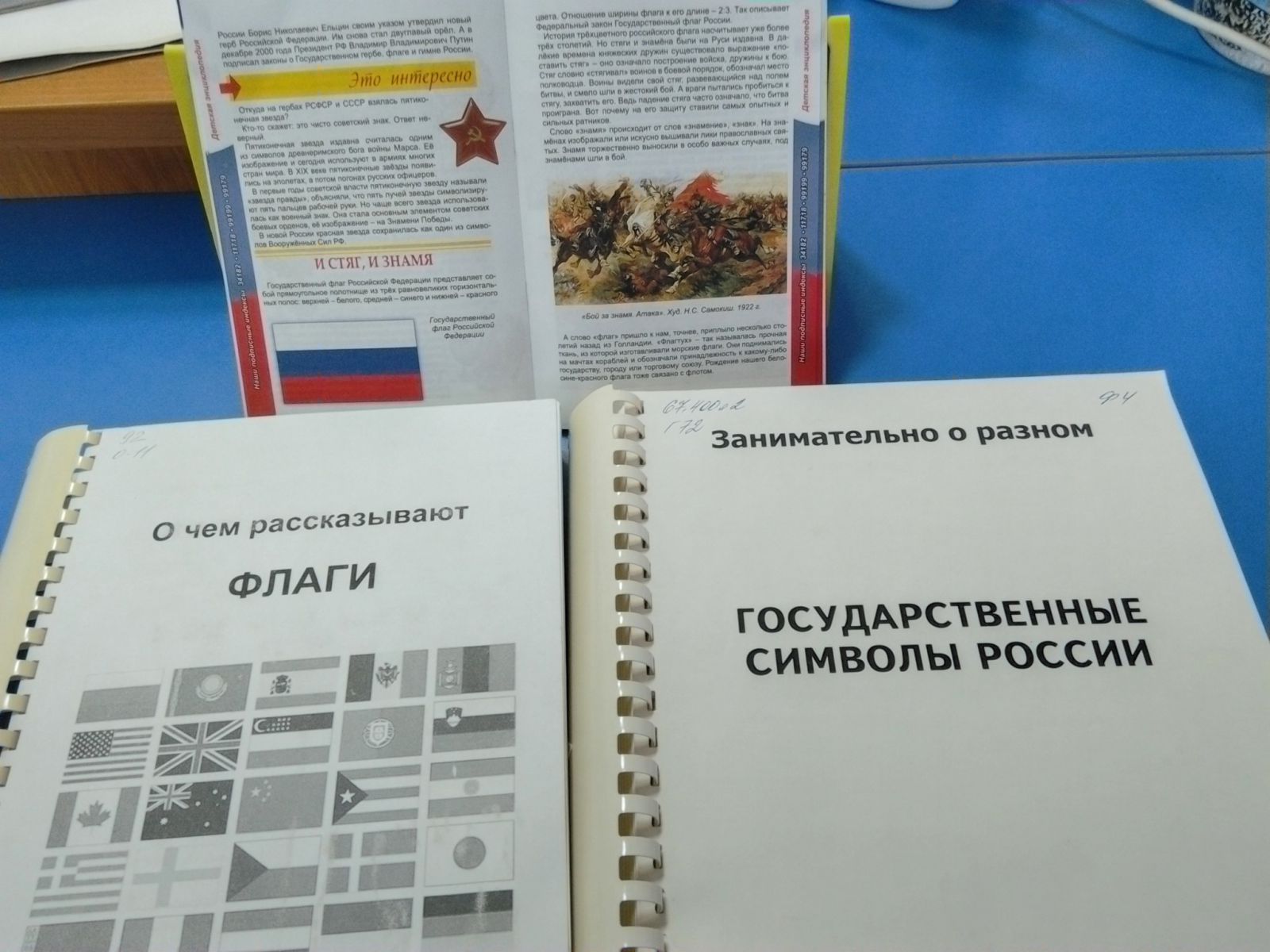 Также на выставке представлены издания шрифтом Брайля «О чем рассказывают флаги» и «Государственные символы России». В книгах рассказывается об истории флагов.