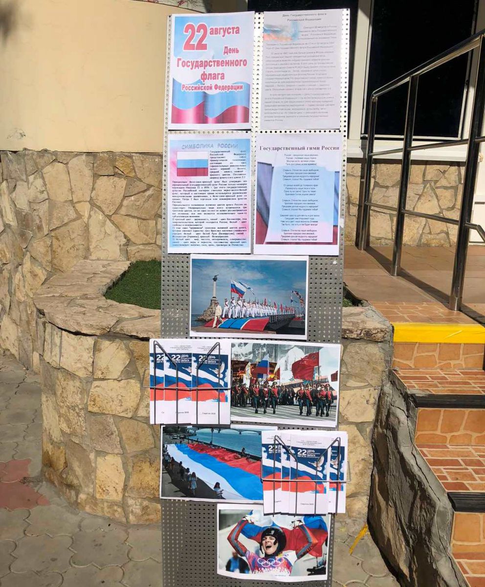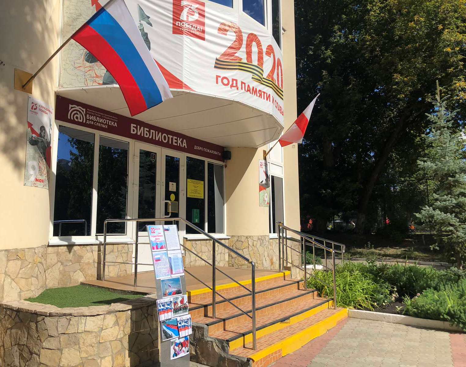 В преддверии праздника сотрудники ГУК «Областная специальная библиотека для слепых» в Детском парке подготовили информационный стенд, на котором представлены плакаты и буклеты по истории Дня Государственного флага Российской Федерации.