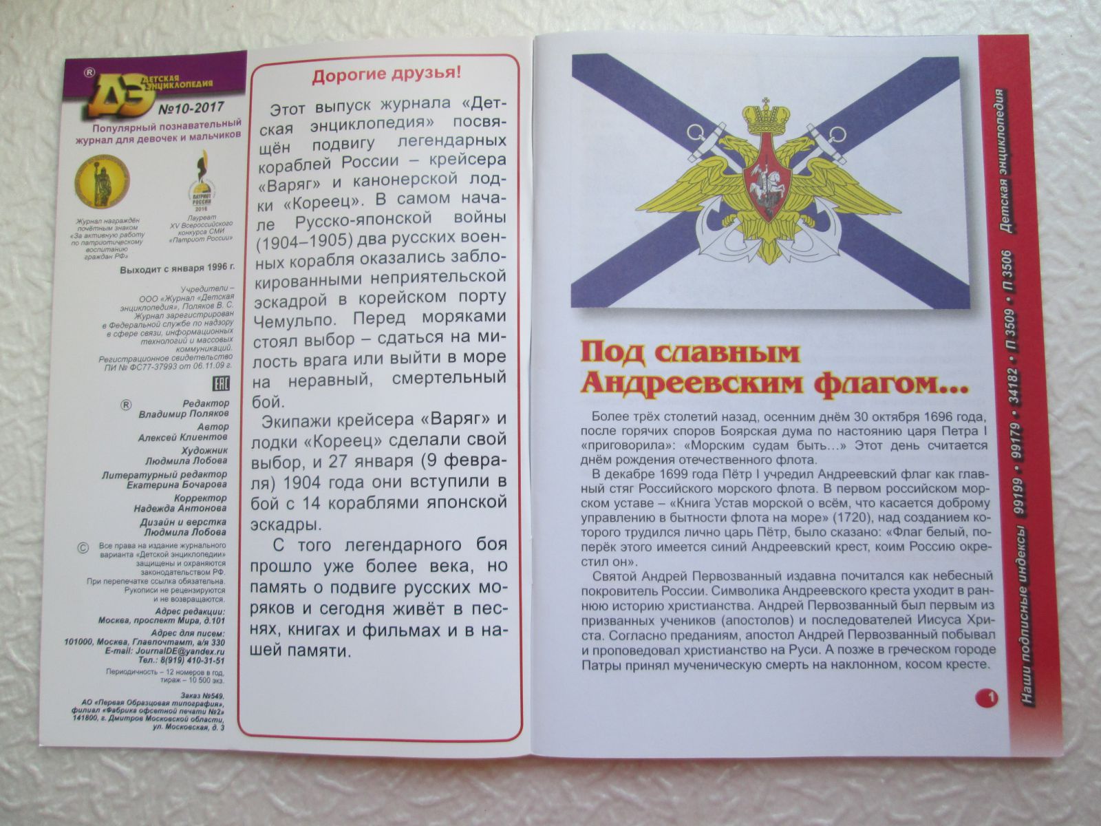 В январе 1992 г. Андреевскому флагу был возвращён статус военно-морского флага России. Это было мудрое и исторически верное решение. Андреевский флаг олицетворяет мощь, силу и доблесть русского флота, который не раз наводил ужас и страх на врагов нашей Родины.