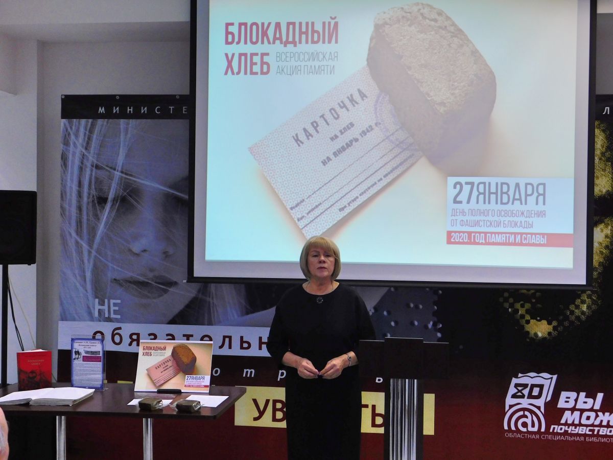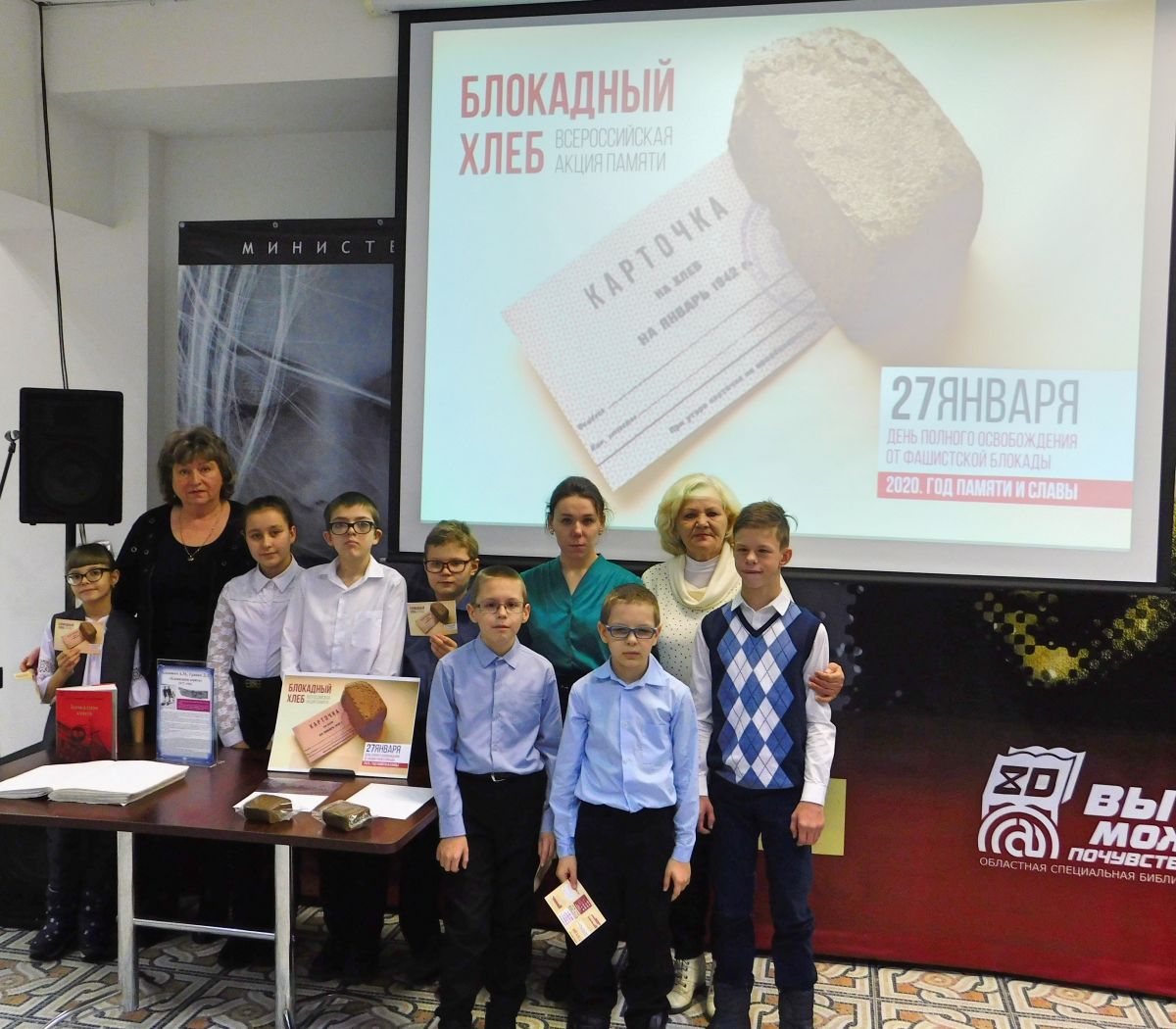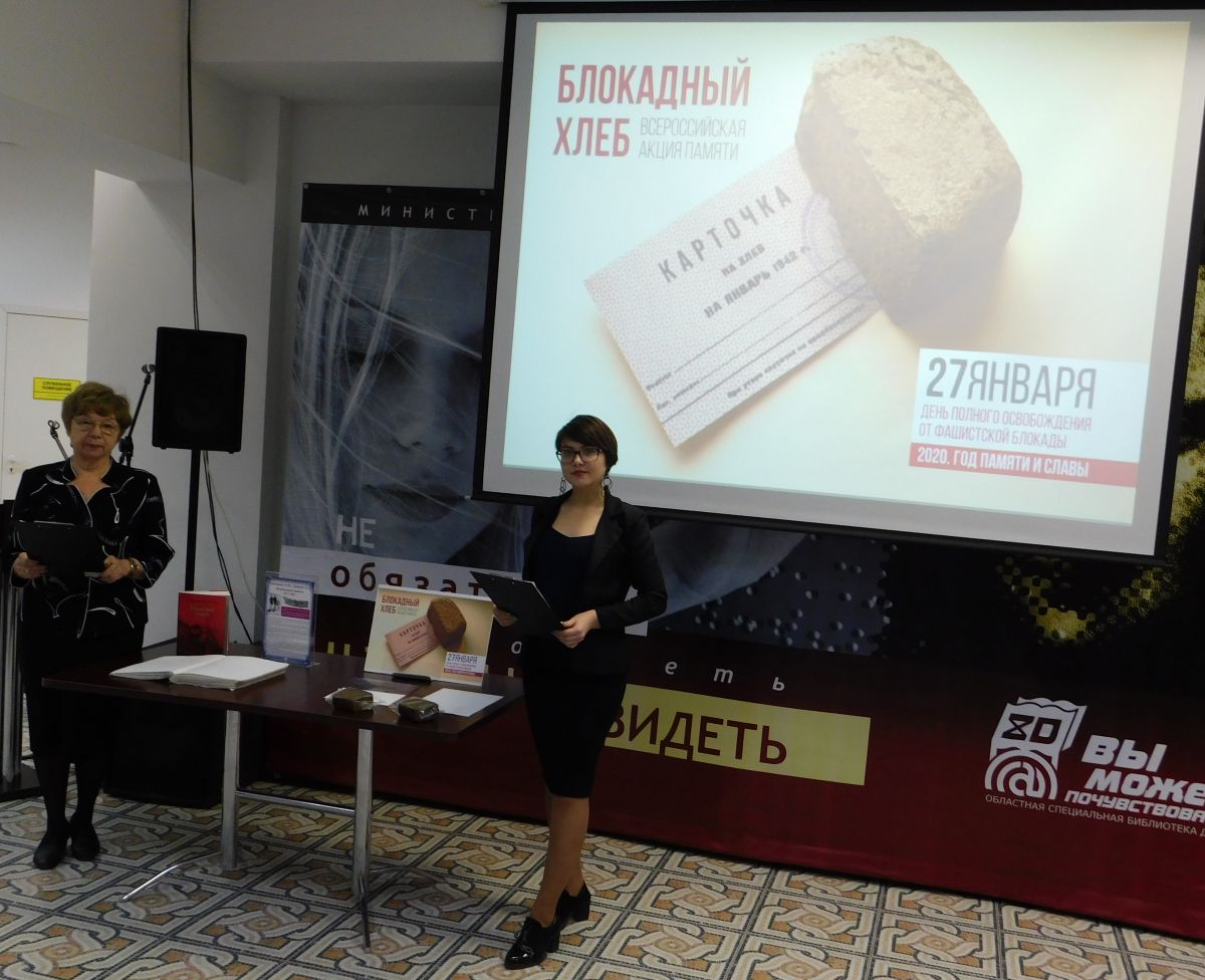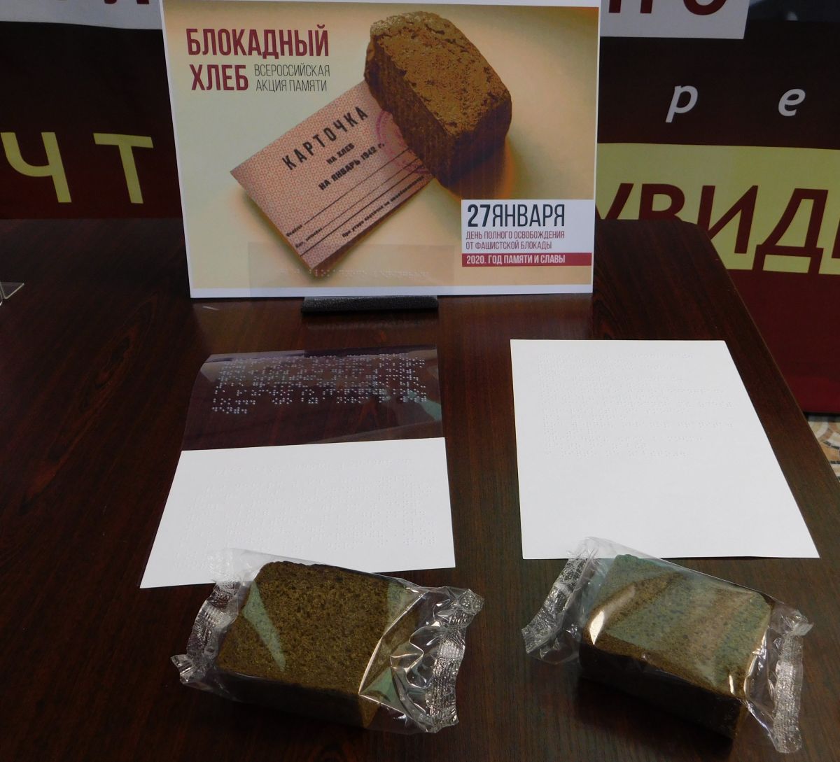23 января 2020 года в ГУК «Областная специальная библиотека для слепых» в Детском парке прошла акция памяти «Блокадный хлеб», посвящённая дате прорыва блокады Ленинграда 18 января 1943 года и Дню снятия блокады 27 января 1944 года. Ключевым символом акции является кусочек хлеба весом в 125 граммов — именно такая минимальная норма выдачи хлеба на человека в день была установлена во время блокады Ленинграда. В рамках мероприятия в библиотеке развёрнута тактильная выставка, на которой представлены кусочки хлеба, символизирующие пай блокадного хлеба. Акция дала старт Году памяти и славы в библиотеке. Библиотека к акции оформлена как культурно-историческая зона, где можно окунуться в атмосферу блокадных лет.