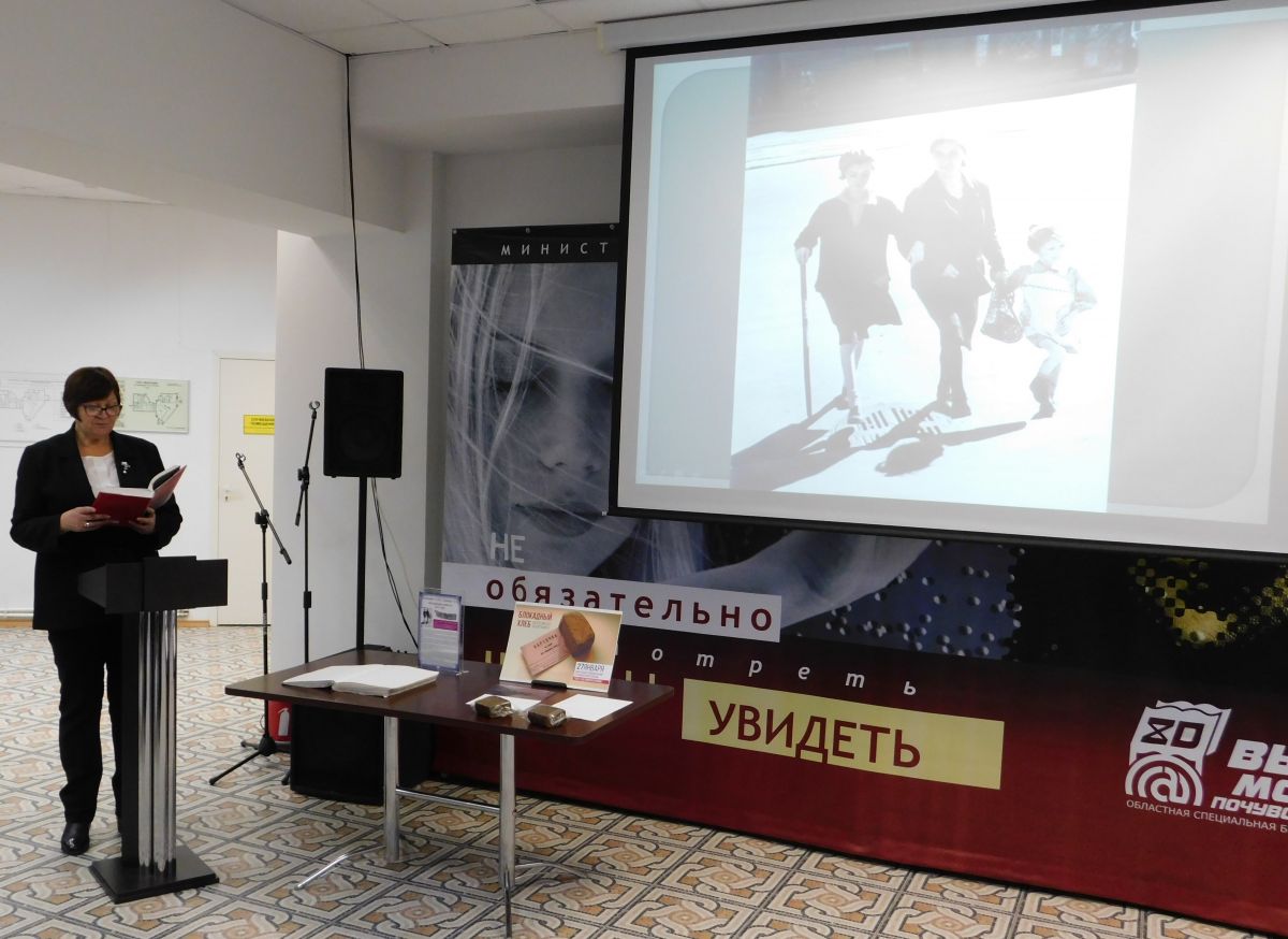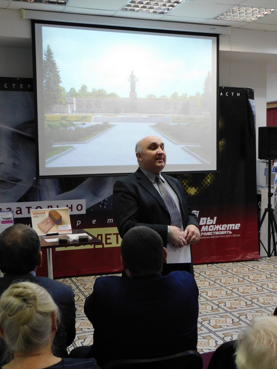 Директор Областной специальной библиотеки для слепых Ольга Новикова напомнила читателям об истории памятной даты – 27 января – День полного освобождения Ленинграда от фашистской блокады (1944 год). Дата установлена законом, подписанным Президентом Российской Федерации Владимиром Путиным 1 декабря 2014 года. Ольга Ивановна рассказала присутствующим о деятельности незрячих в блокадном Ленинграде.
