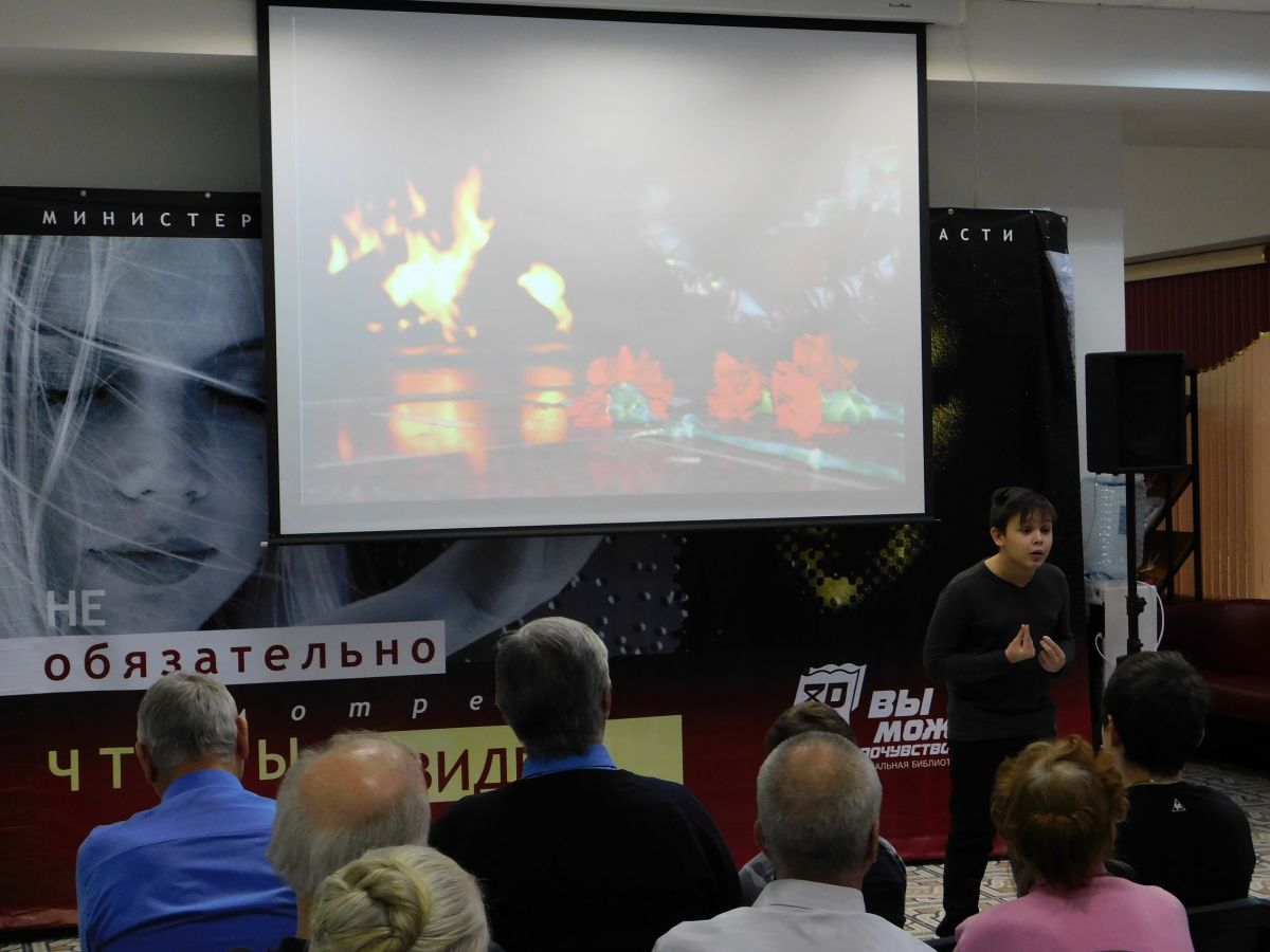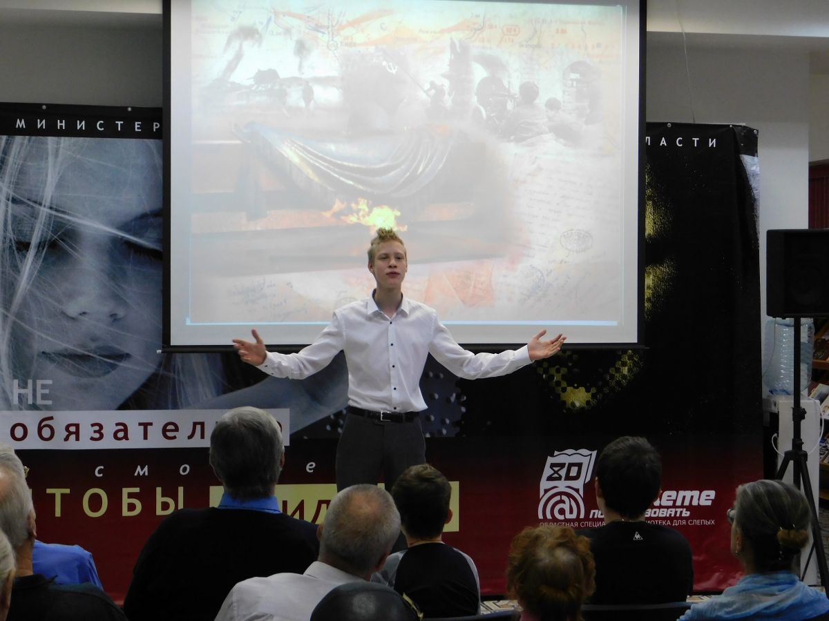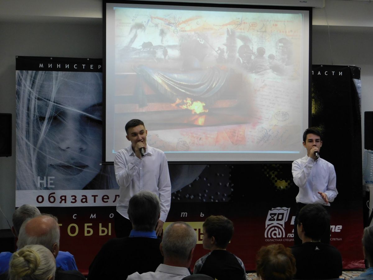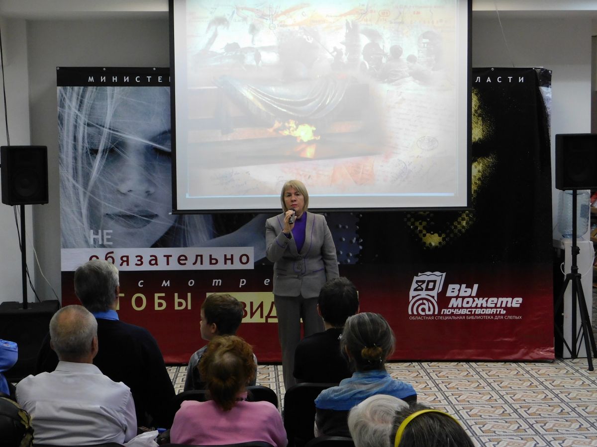 В ГУК «Областная специальная библиотека для слепых» в Детском парке прошёл тематический вечер к Году памяти и славы.