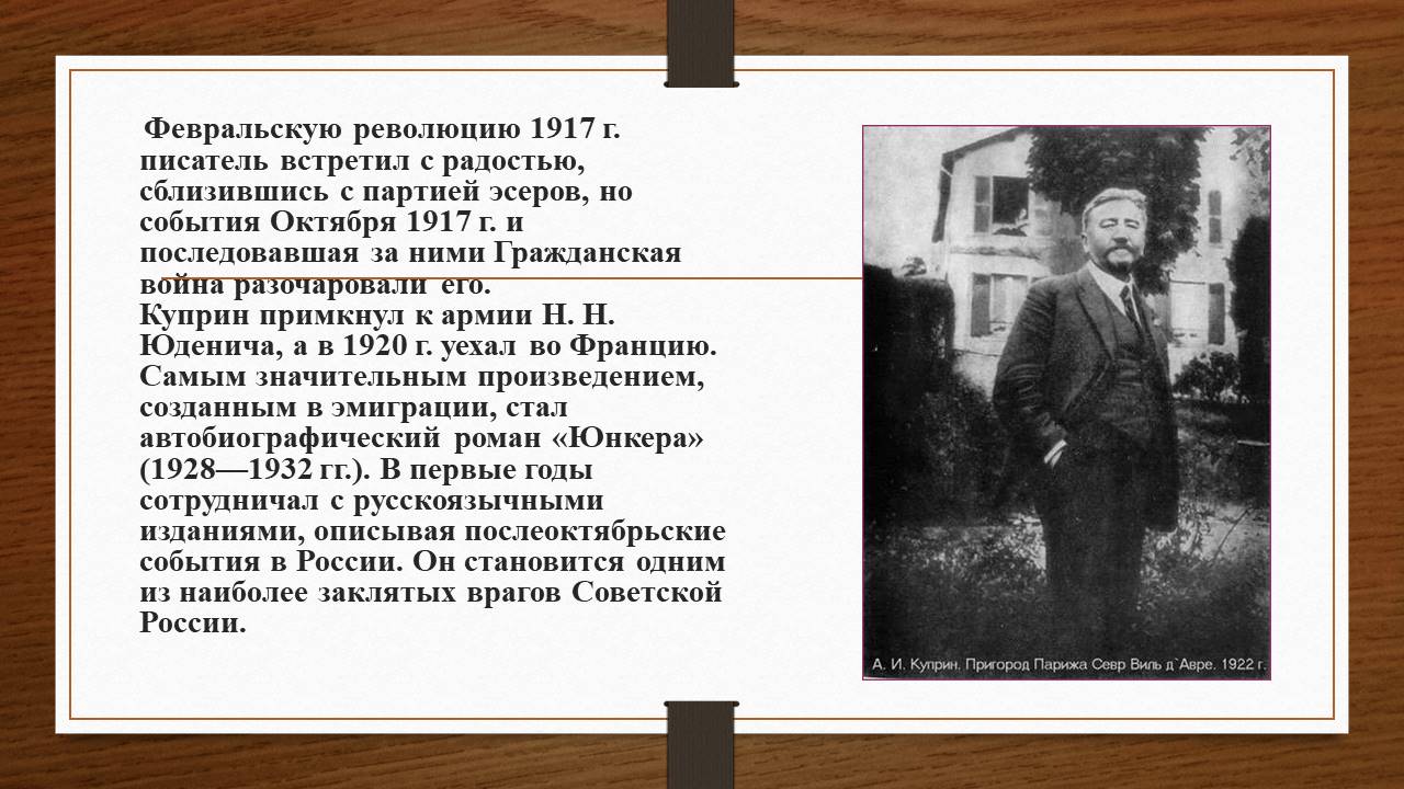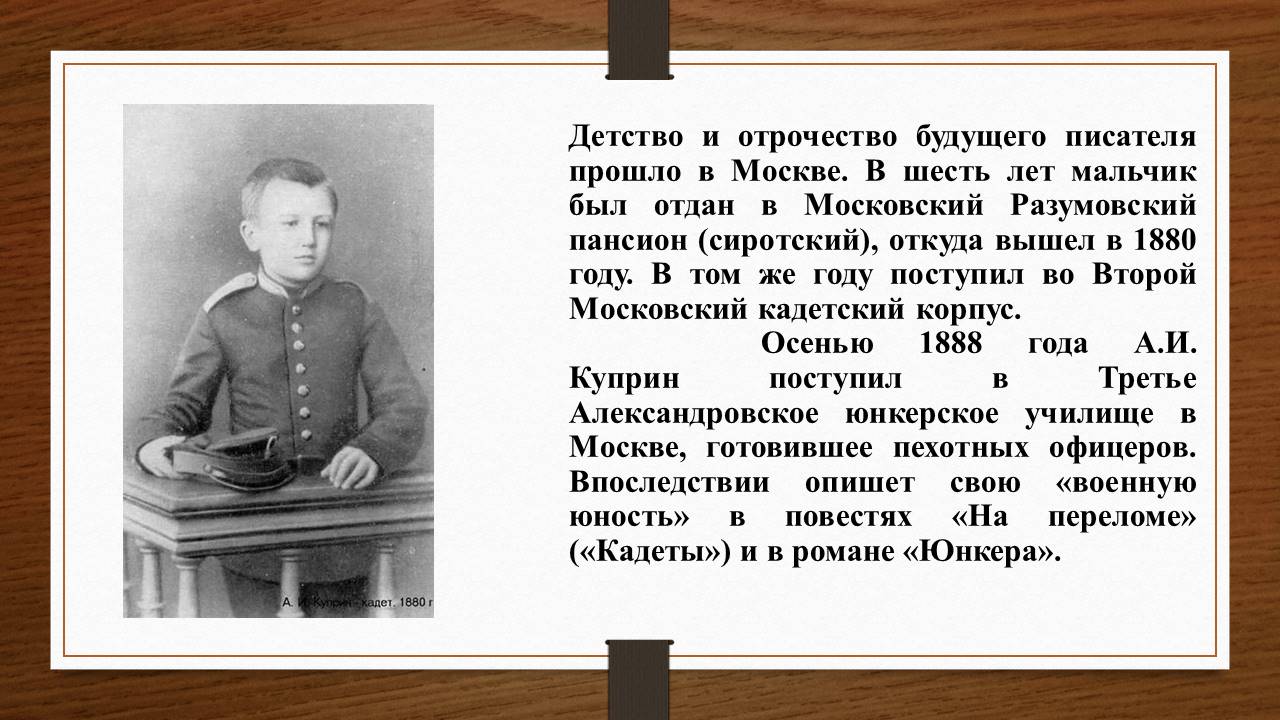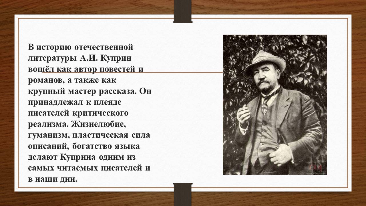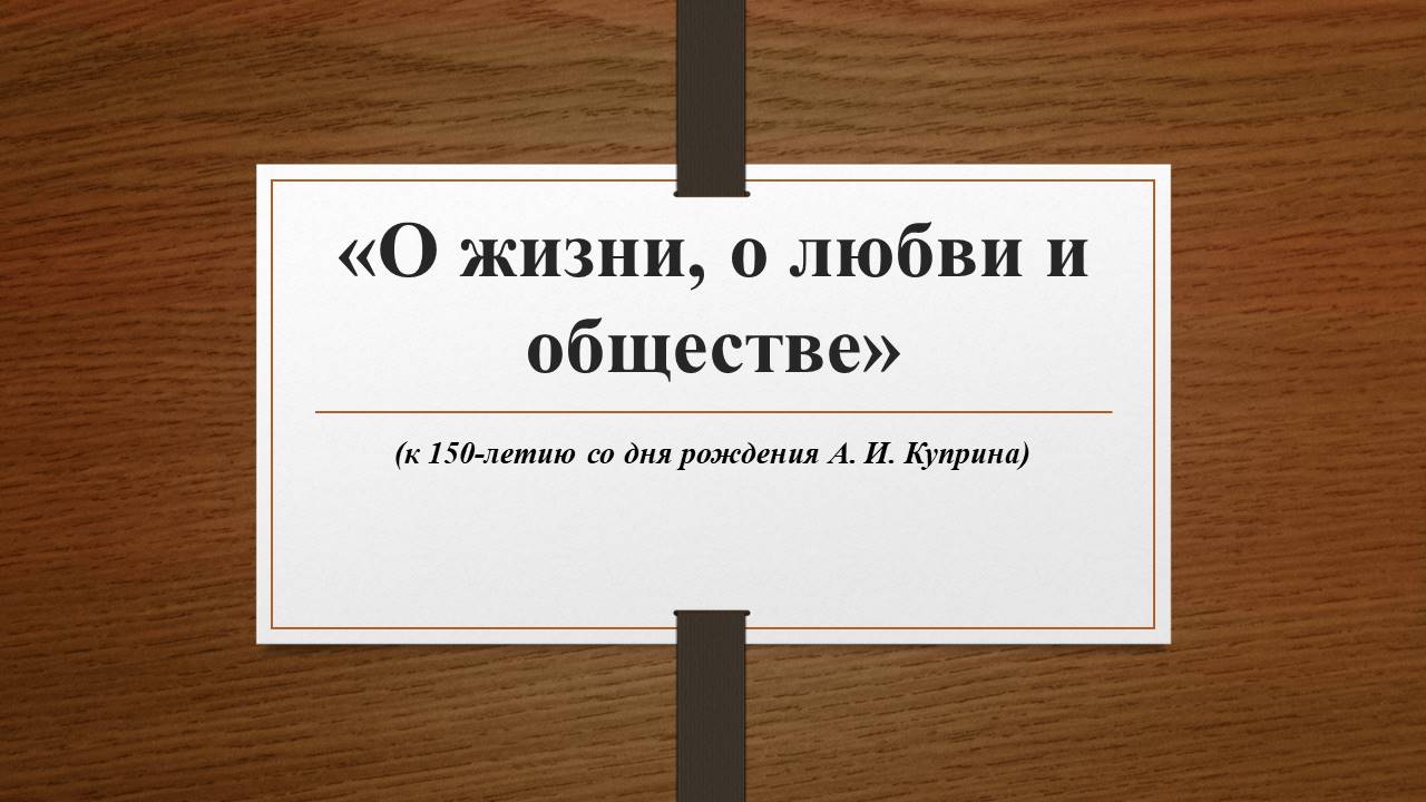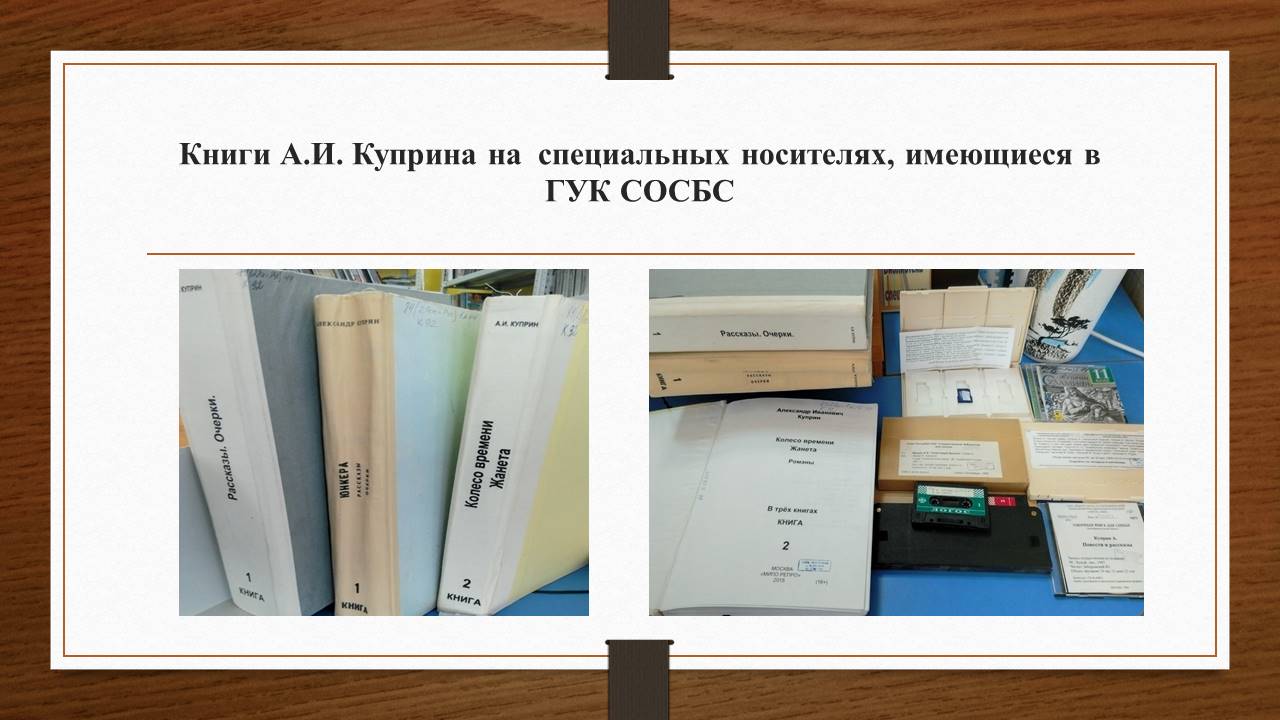 В Областной специальной библиотеке для слепых по адресу 1-я Садовая, 4 работает книжная выставка к 150-летию со дня рождения писателя Александра Ивановича Куприна (1870 – 1938). Предлагаем ознакомиться с выставкой онлайн.