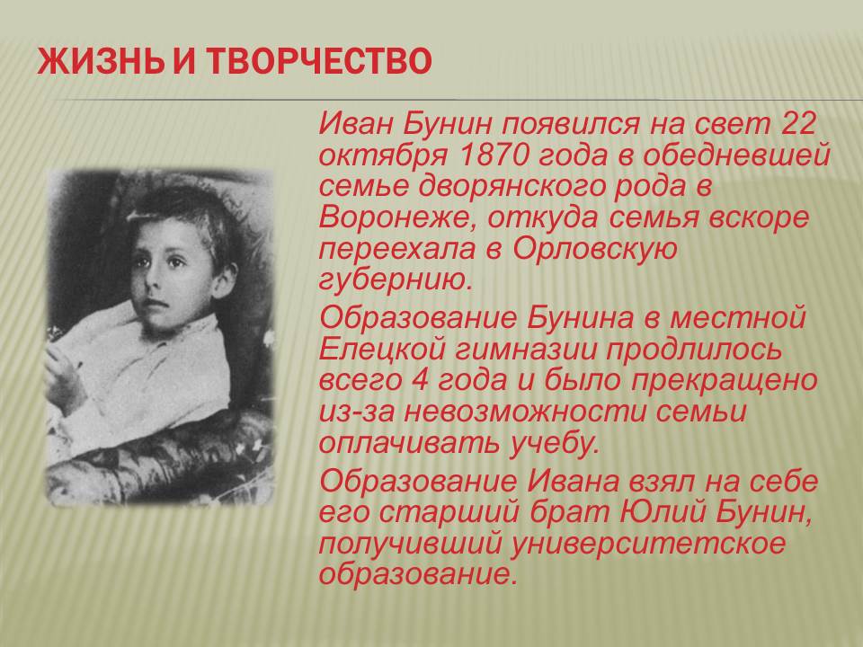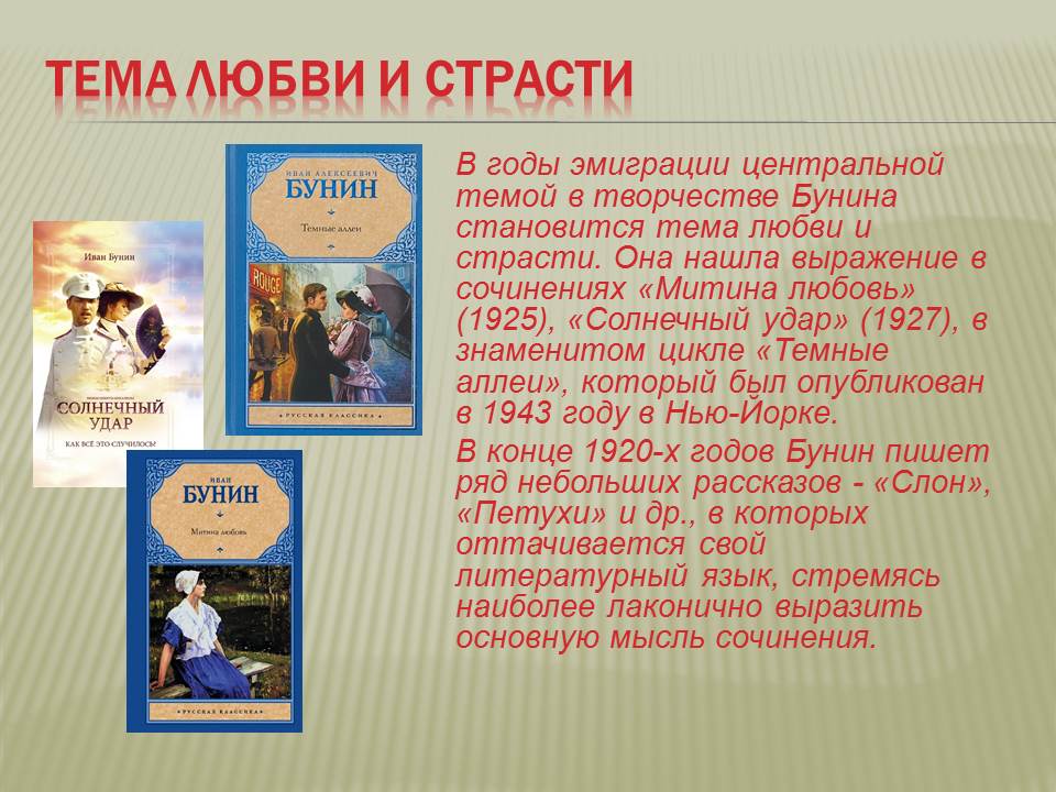 Творчество Бунина в полном объеме относительно недавно стало доступно российскому читателю. Его блестящую прозу ценят как литературные гурманы, так и любители остросюжетной литературы.