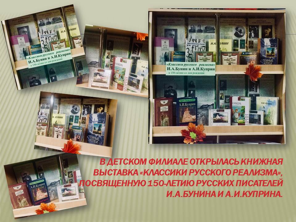 Детский филиал Областной специальной библиотеки для слепых приглашает посетить виртуальную книжную выставку «Классики русского реализма», посвященную 150-летию русских писателей Ивана Алексеевича Бунина и Александра Ивановича Куприна.