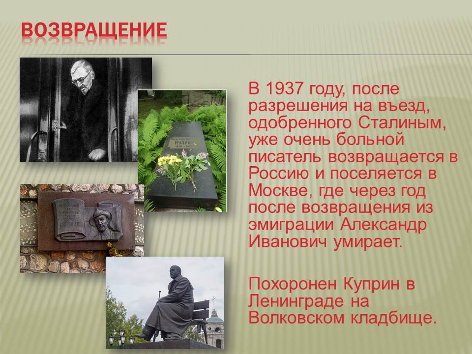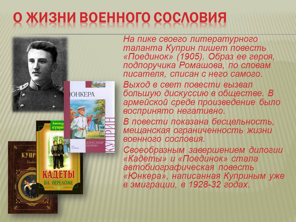 Восторженная увлеченность жизнью, любовь к простому человеку, неиссякаемая вера в его духовные силы, протест против произвола и насилия – все это делает произведения А. И. Куприна понятными и близкими читателю наших дней.