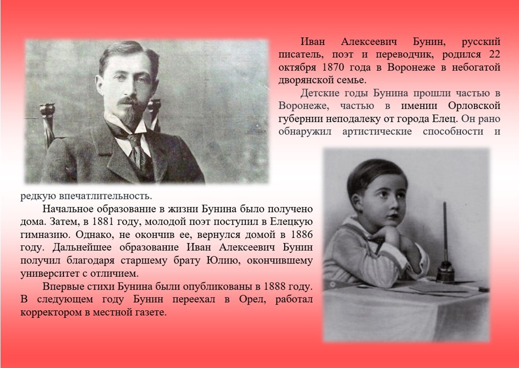 Литературные юбилеи 2020 года. Иван Алексеевич Бунин (1870 – 1953)